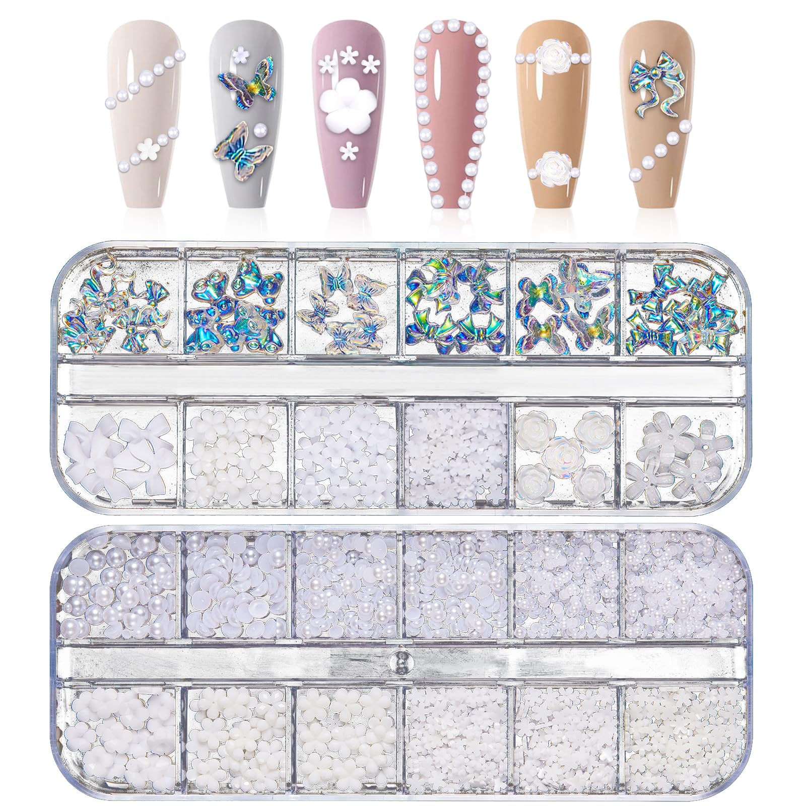 Elevate your nail art with our Nail Art Rhinestones and Pearls set! This premium collection includes 2 boxes of dazzling 3D decorations, featuring an assortment of butterflies, bowknots, flowers, and aurora bear charms. Made from high-quality resin, these rhinestones and pearls are durable, long-lasting, and safe for your nails.?Thoughtful After-Sales Service?We genuinely care about your shopping satisfaction and experience. If you have any questions about our product, please contact us. Our fast and efficient customer service team will promptly address any issues or inquiries you may have within 24 hours. ?Perfect Gift? Ideal for nail art enthusiasts and crafters, this set makes a thoughtful gift for birthdays, holidays, or special occasions. Delight your friends and loved ones with a collection that enhances their creativity and adds a touch of glamour to their projects. ?Wide Application? These versatile 3D nail art decorations are perfect for more than just nails. Use them to enhance eye makeup, body art, or personalize items like phone cases, glasses, guitars, and bags for a unique touch. ?Easy Application? Comes with a variety of sizes and shapes that are easy to apply, making it perfect for both beginners and professional nail artists. ?Quality Material? Crafted from premium resin, our nail rhinestones and pearls are durable and sturdy, ensuring they won't break or fade. Safe for use, they won’t damage your nails or skin, allowing you to confidently create beautiful and lasting nail art. ?Versatile Designs? Includes 3 boxes of assorted rhinestones and pearls, featuring charming 3D designs like butterflies, bowknots, and flowers for endless creative possibilities.