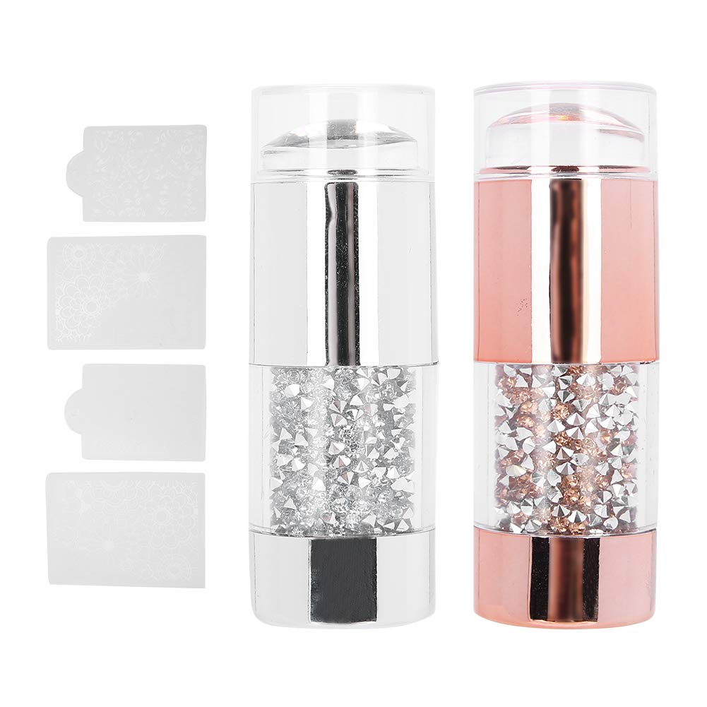 Specification: Condition: 100% brand new Article type: nail stamping Material: silicone Color: rose gold, silver Technical data: unique double head with cover Features: Special seal for the printing of nail art and the image transmission with crystal clear and white silicone, unique dual-head design, double, soft and flexible silicone head, more convenient and easy to clean and colorful streaming, stylish and elegant. Use: household, nail studio etc. Package list: 2 x nail stampers 4 x print scraper double heads with lid design, double heads made of white silicone and transparent silicone with lid against dust and pollution.High quality soft and elastic silicone head, comfortable and precisely for recording pictures and convenient for transmission.It can be used in different ways and is suitable for home use, nail studios and other places.The stylish and exquisite appearance of the seal and the colorful ornament with rhinestones are even more agile.The silicone head has a greatly reducing pattern and a strong adsorption, which can greatly reduce the pattern and create a sensitive nail surface. Spezifikation: Zustand: 100% nagelneu Artikeltyp: Nagelstampfer Material: Silikon Farbe: Roségold, Silber Technische Daten: Einzigartiger Doppelkopf mit Abdeckung Merkmale: Spezielles Siegel für den Druck von Nail Art und die Bildübertragung mit kristallklarem und weißem Silikon, einzigartigem Dual-Head-Design, doppeltem, weichem und flexiblem Silikonkopf, bequemer und leicht zu reinigender Übertragung sowie farbenfrohen Strassverzierungen, stilvoller und eleganter anspruchsvoll. Verwendung: Haushalt, Nagelstudio usw. Paketliste: 2 x Nagelstampfer 4 x DruckschaberDoppelköpfe mit Deckeldesign, Doppelköpfe aus weißem Silikon und transparentem Silikon mit Deckel gegen Staub und Verschmutzung. Hochwertiger weicher und elastischer Silikonkopf, bequem und genau zum Aufnehmen von Bildern und bequem zum Übertragen. Es kann auf verschiedene Arten verwendet werden und eignet sich für den Heimgebrauch, Nagelstudios und andere Orte. Das stilvolle und exquisite Erscheinungsbild der Robbe und die farbenfrohe Verzierung mit Strasssteinen sind noch agiler. Der Silikonkopf hat ein stark reduzierendes Muster und eine starke Adsorptionskraft, die das Muster stark reduzieren und eine empfindliche Nageloberfläche erzeugen kann.Nail Art Stamper, professionelle Silikon-Doppelend-Maniküre-Stempel Siegel Nail Art Stampers für Frauen, Mädchen, Salon und Heimgebrauch