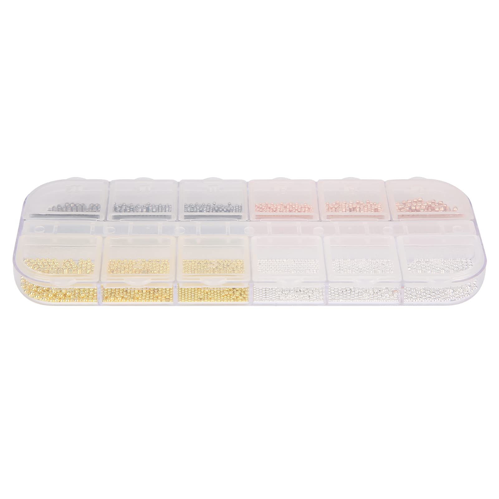 Nail Art Steel Ball Decor Metal Nail Art DIY Ball Decorations 12 Grids Nail Art Ball Decorations Convenient Nail Art Supplies for Women for Home(07)