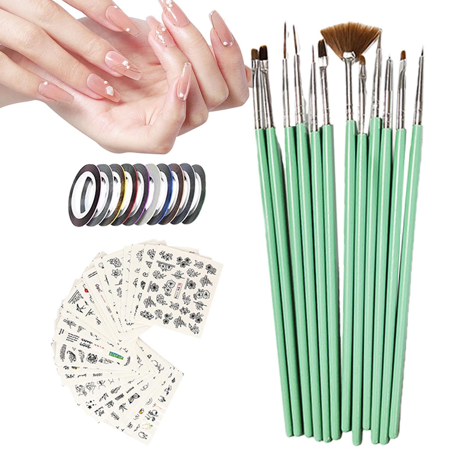 Nail Brushes | Painting Brushes Set with Nail Liner Brush and Nail Pens for Home Use and Professional Nail Salon with Stickers