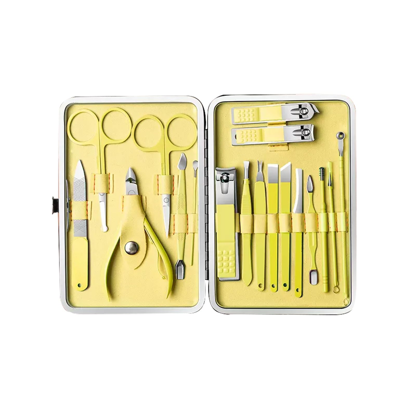 Product name: Nail clipper set Material: stainless steel Color: yellow Holster size: 21cm 16cm 8.3in 6.3in Applicable to: UniversalIf you have any questions please email us within 24 hours I will reply you as soon as possible. More comprehensive functions, set of care from head to toe. Leather case that is easily opened with a push of a button. It is also very lightweight pack it with you when you go traveling. resistant these nail cutters will be an enduring addition to your pedicure and manicure tools.