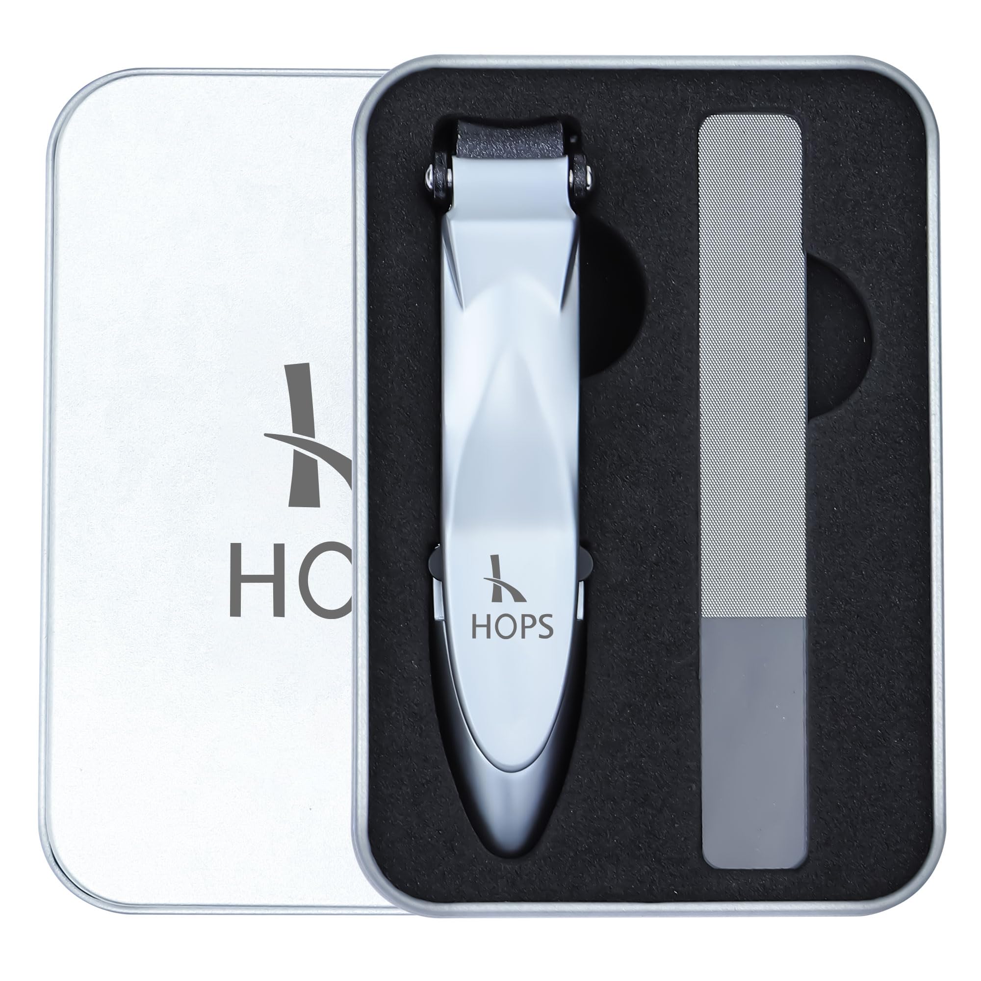 Nail clippings with nano-glass files and collecting containers in gift box: Hops nail snap in a gift box can be used safely for years and are an ideal gift for men, women or friends.This nail snap made of stainless steel offers ergonomics, quality and practicality at the same time.Due to the integrated chamber, cut nails spill nothing.Its excellent sharpness easily cuts even the hardest and thickest nails.The non -slip design ensures easy handling.Ideal for finger and toenails.A high -quality glass file can be easily cleaned by washing.