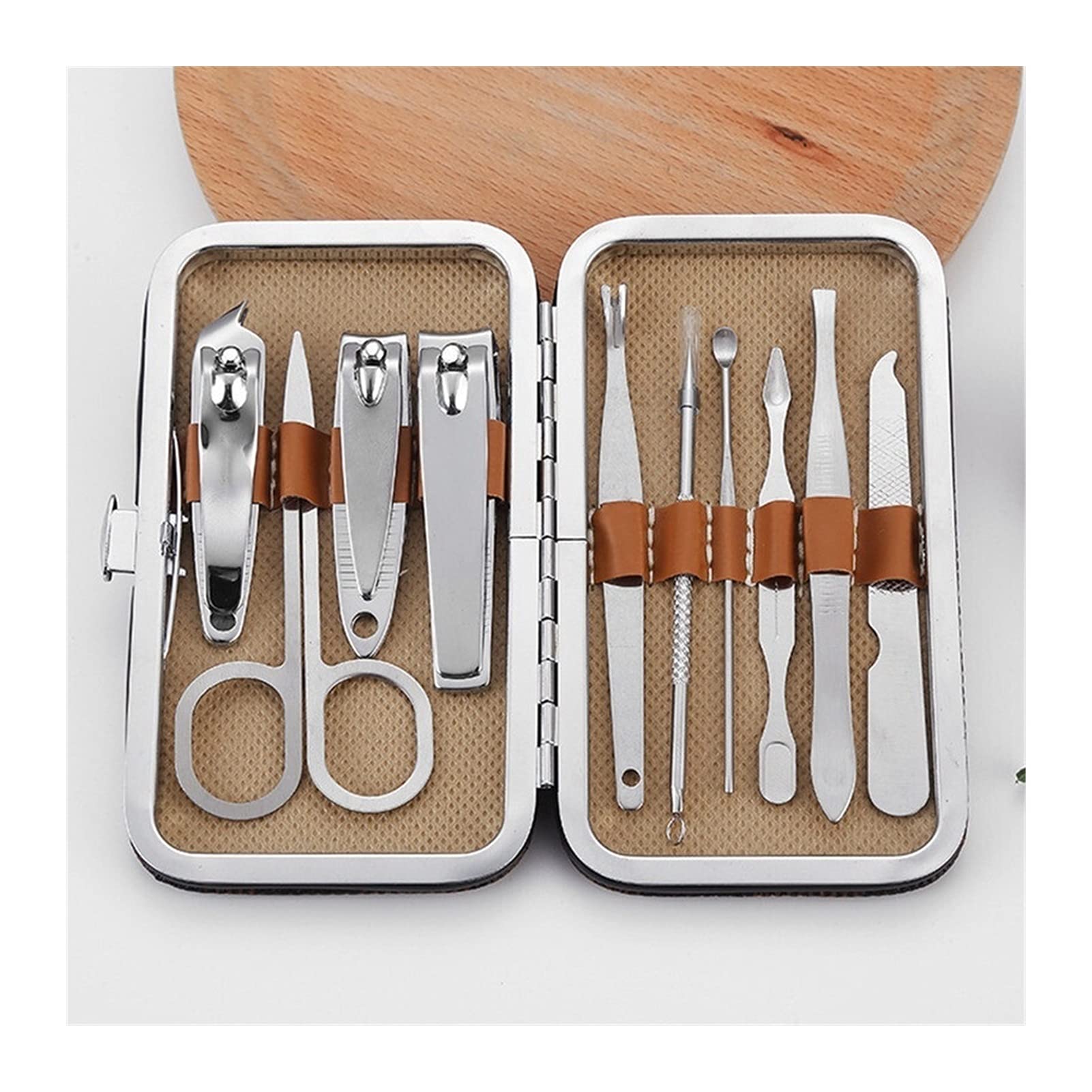 Perfect for all types of nails, it is not only a women manicure set also for men, boys, and seniors. The best Christmas gifts and Thanksgiving gifts! Product Type: Nail Clipper Set Weight: about 350 grams Material: Stainless steel Packing quantity: 10 pieces/set Features: curved edges, high hardness, corrosion resistance note: 1. Before buying, please check the color and size. 2. Product photos do not include products other than products. 3. Due to different monitors, please note that there may be slight color difference, please understand. 4. The above data is for reference only, the size is manually measured, the error is 1-3 cm, please allow, thank you.A unisex gift: nail care tools are suitable for men and women. This is the perfect gift or daily surprise gift for family and friends. Portable: All beauty kits are packed in a small PU leather bag, which is easy to carry, classic in appearance and durable. Small accessories, suitable for travel and daily use. Role: to help you cut and smooth the edge or surface of the nail. Can solve facial problems and trim eyebrows. High-quality materials: 100% brand new high-quality and very durable materials made through careful cutting, polishing, electroplating and other processes, preferably stainless steel. Complete tools: Nail clippers set contains: 10 stainless steel tools (scissors, nail clippers, ear picks, etc.). lightweight in design making it your perfect travel partner,Easy to hold and Easy to use so for For traveling, You can put this accessories kit case in your bag and carry it wherever you go, ideal for travel also everyday life.
