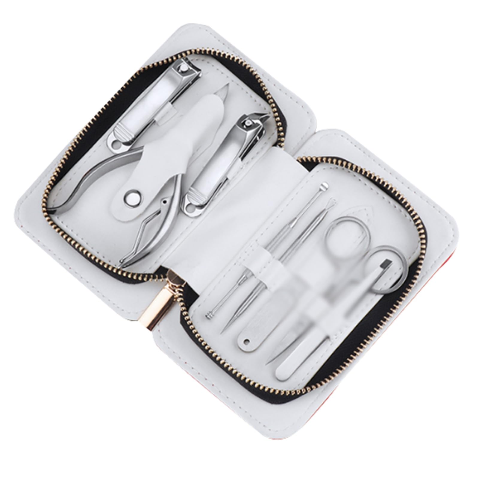Product name: Nail clipper set Material: stainless steel Color: white, beige, red Holster size: 18.5cm * 14.5cm / 7.3in * 5.7in Applicable to: Universal