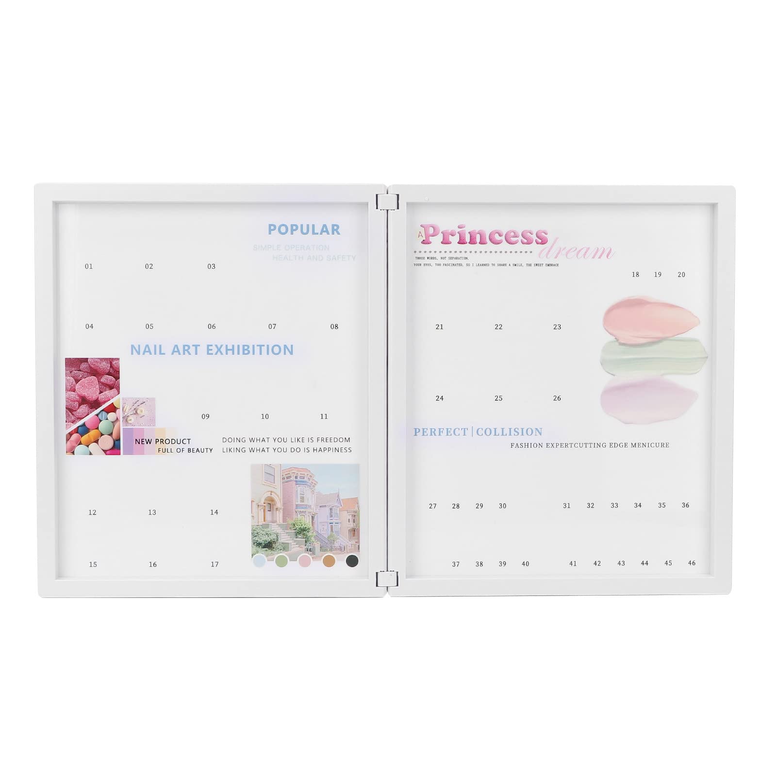 Feature: 1. Magnetic closure design, using magnets to automatically attract, easy to open and close the book, bring you conveneince. 2. Digital marking, clear at a glance, your customers can easily choose the color they want through the number. 3. It can hold 46 different gel polish nail tip colors, easily display your nail polish color, suitable for nail salon. 4. Customers can compare nail tip of different colors to choose the desired color, a practical nail art accessory. 5. Rounded arc, it won't hurt your hands. Adopts good material, safe and stable, firm and durable for long term use. Specification: Condition: 100% Brand New Item Type: Nail Color Card Book Material: Plastic Size: Approx. 25.8 x 21.8 x 2.4cm / 10.2 x 8.6 x 0.9in Capacity: 46 Colors Characteristics: Used to store the finished nail art design, can accommodate different styles of finished nail tip Purpose: Nail salon supplies, nail art works display Package List: 1 x Color Card Book Note: 1. Please allow slight error due to manual measurement. Thanks for your understanding. 2. Monitors are not calibrated same, item color displayed in photos may be showing slightly different from the real object. Please take the real one as standard. INGREDIENTS defaultRounded arc, it won't hurt your hands. Adopts good material, safe and stable, firm and durable for long term use. Magnetic closure design, using magnets to automatically attract, easy to open and close the book, bring you conveneince. It can hold 46 different gel polish nail tip colors, easily display your nail polish color, suitable for nail salon. Customers can compare nail tip of different colors to choose the desired color, a practical nail art accessory. Digital marking, clear at a glance, your customers can easily choose the color they want through the number.