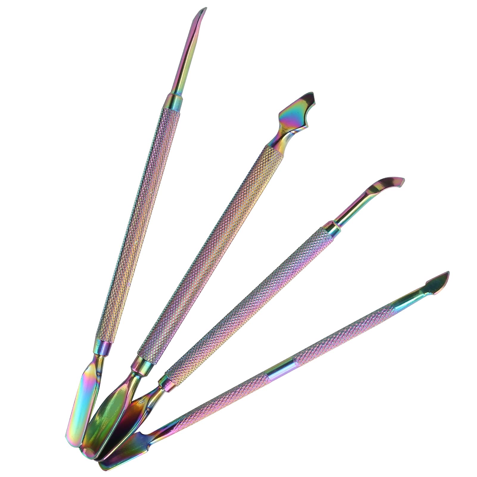 Feature: 1. 4 kinds of cuticle pusher, help to remove the cuticle and remove the dirt under the nails, practical for use. 2. Made of high quality stainless steel material, safe and eco-friendly, rust-proof, sturdy and durable. 3. Non-slip handle, conform to ergonomic design, easy to hold and control; polished surface, easy to clean. 4. Equipped with a storage box for easy storage, looks exquisite and stylish, easy to carry when traveling. 5. Sharply cut or scrape off the dead cuticle at one end; the curved flat end pushes the skin back perfectly. Specification: Condition: 100% Brand New Item Type: Cuticle Pusher Material: Stainless Steel Product Use: Household, nail salon, etc. How to Use: Step 1: Apply cuticle remover to soften nails and cuticles. Step 2: Put your fingers in a small bowl of warm water and soak for about 3 minutes. Step 3: Use a small towel to gently dry your fingernails. Step 4: Use the round part of the cuticle pusher to push back the cuticle on the nail surface. Step 5: Use the part to push the dead cuticle down to the corner of the nail. (You can also use this steel pusher tip to clean your nails. Repeat this process for all nails.) Package List: 1 x Double-Headed Small Steel Pusher 1 x Double-Headed Large Steel Pusher 1 x Pointed Head Steel Pusher 1 x Big Head Steel Pusher 1 x Storage Box INGREDIENTS defaultEquipped with a storage box for easy storage, looks exquisite and stylish, easy to carry when traveling. It is also very suitable for removing nail polish, simple operation, suitable for home use and nail salon. Non-slip handle, conform to ergonomic design, easy to hold and control; polished surface, easy to clean. 4 kinds of cuticle pusher, help to remove the cuticle and remove the dirt under the nails, practical for use. Made of high quality stainless steel material, safe and eco-friendly, rust-proof, sturdy and durable.