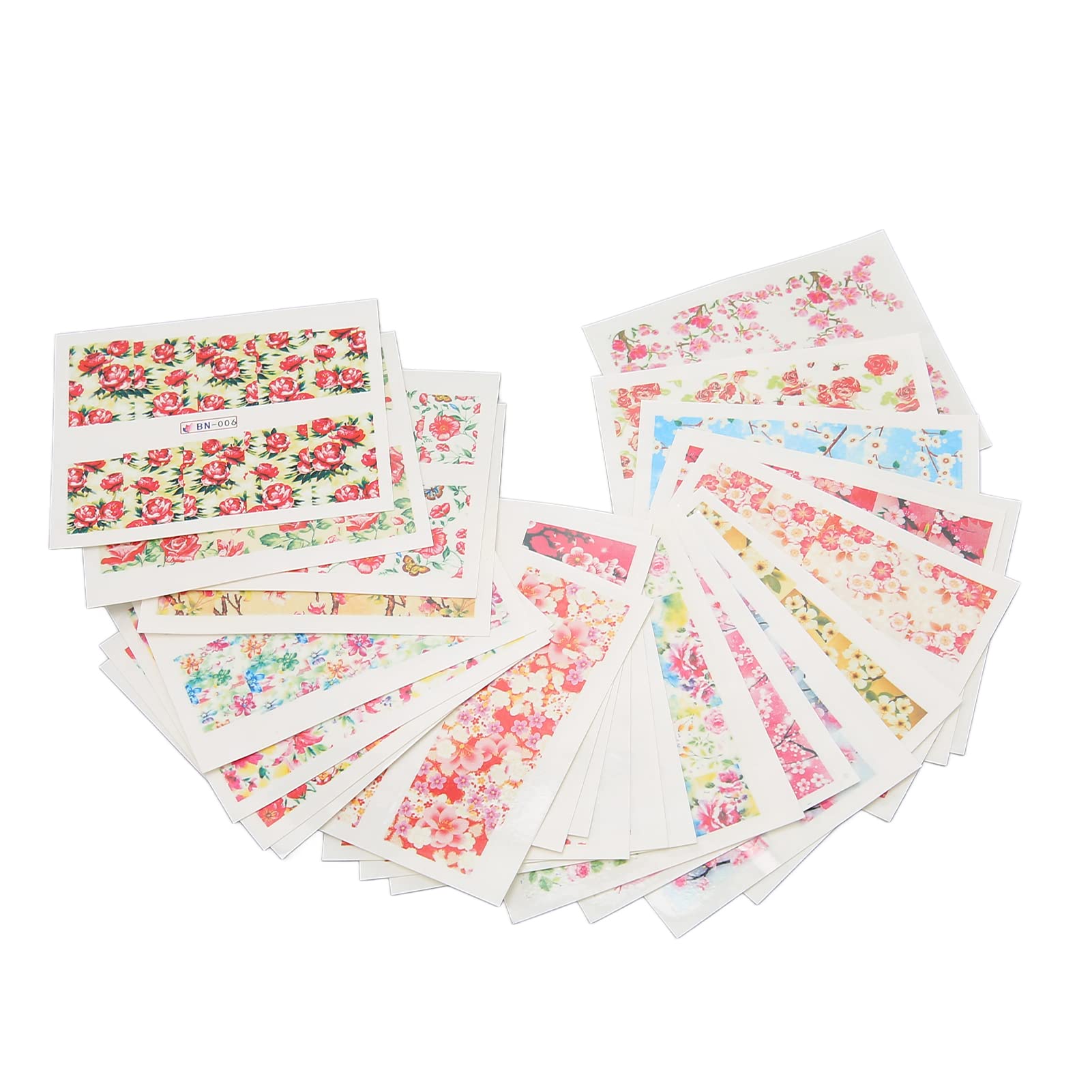 Feature: 1. Exquisite Appearance: Diverse styles, all kinds of vivid and beautiful flower patterns, colorful, delicate, fashionable and eye catching. 2. Scope Of Application: Colorful flower pattern stickers allow you to enjoy the fun of DIY nail art works, which can be applied to your nails and toenails. 3. Excellent Material: Made of high quality material, eco friendly and non toxic, safe for children and adults, not easy to fall off. 4. 24 Sheet Of Nail Art Stickers: Enough to meet your different decoration needs, you can share them with friends and family. 5. Characteristics: Easy to stick on natural or artificial nails, very suitable for nail polish, UV gel, nail tips and acrylic nails. How to Use: 1. Clean the nail surface first. 2. Cut out the desired pattern, remove the film from the product, and immerse it in water for 10-20 seconds. 3. Wet nails with water. 4. Use tweezers to gently slide the sticker up to the surface of the nail, and then press firmly. 5. Use a paper towel to gently dry the excess water on the surface. 6. Apply top coat to the nails to protect the stickers for a long-lasting effect, or apply a layer of transparent nail polish. Specification: Item Type: Nail Art Sticker Quantity: 24 Sheet / Set Single Sheet Size: Approx. 6.5 x 5.3cm / 2.6 x 2.1in Characteristics: Easy to stick on natural or artificial nails, very suitable for nail polish, UV gel, nail tips and acrylic nails. Package List: 24 INGREDIENTS default24 Sheet Of Nail Art Stickers: Enough to meet your different decoration needs, you can share them with friends and family. Characteristics: Easy to stick on natural or artificial nails, very suitable for nail polish, UV gel, nail tips and acrylic nails. Scope Of Application: Colorful flower pattern stickers allow you to enjoy the fun of DIY nail art works, which can be applied to your nails and toenails. Excellent Material: Made of high quality material, eco friendly and non toxic, safe for children and adults, not easy to fall off. Exquisite Appearance: Diverse styles, all kinds of vivid and beautiful flower patterns, colorful, delicate, fashionable and eye catching.
