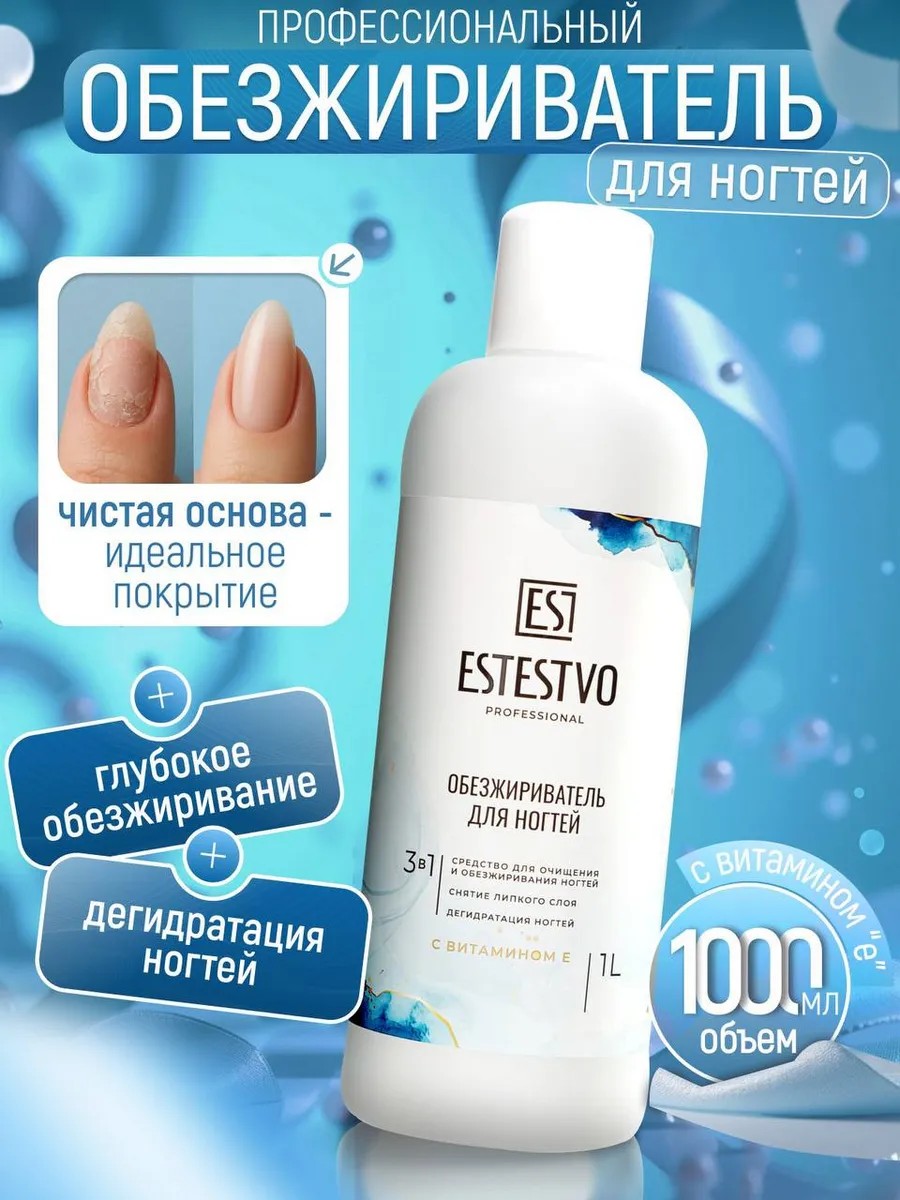 Обезжириватель-дегидратор для ногтей ESTESTVO, 1л — гипоаллергенный уход и профессиональное качество