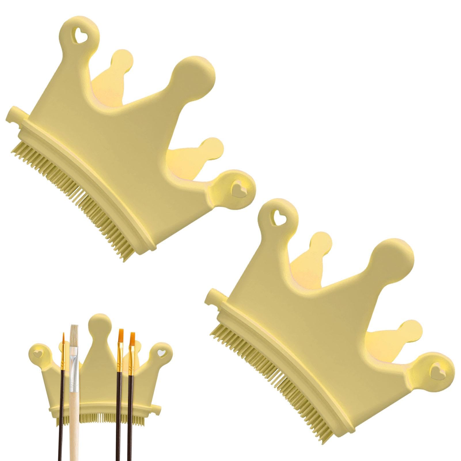 Nail Dust Brush Silicone Finger Nail Separators for Manicure Finger Separator Nail Dusting Brush Nail Gel Polish Pen Brush Stand for Nail Salon Yellow