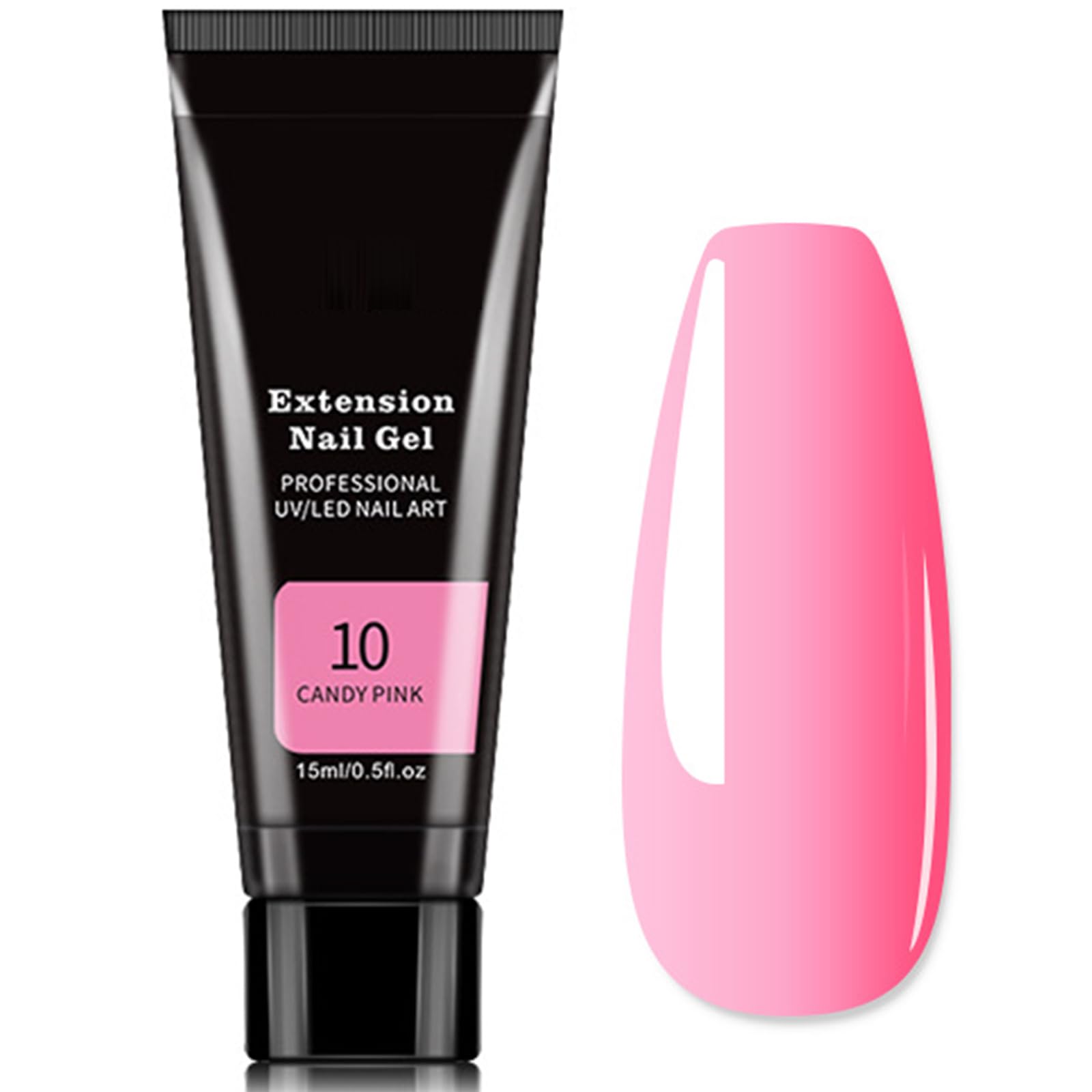 Nail Extension Gel Nail Builder 15ml Poly False Nail Gels Nail Extension Nude Pink Nail Gel Enhancement Crystal Polygel for Beginners Nail Art French Manicure Women (#04 Nude pink) Candy Pink