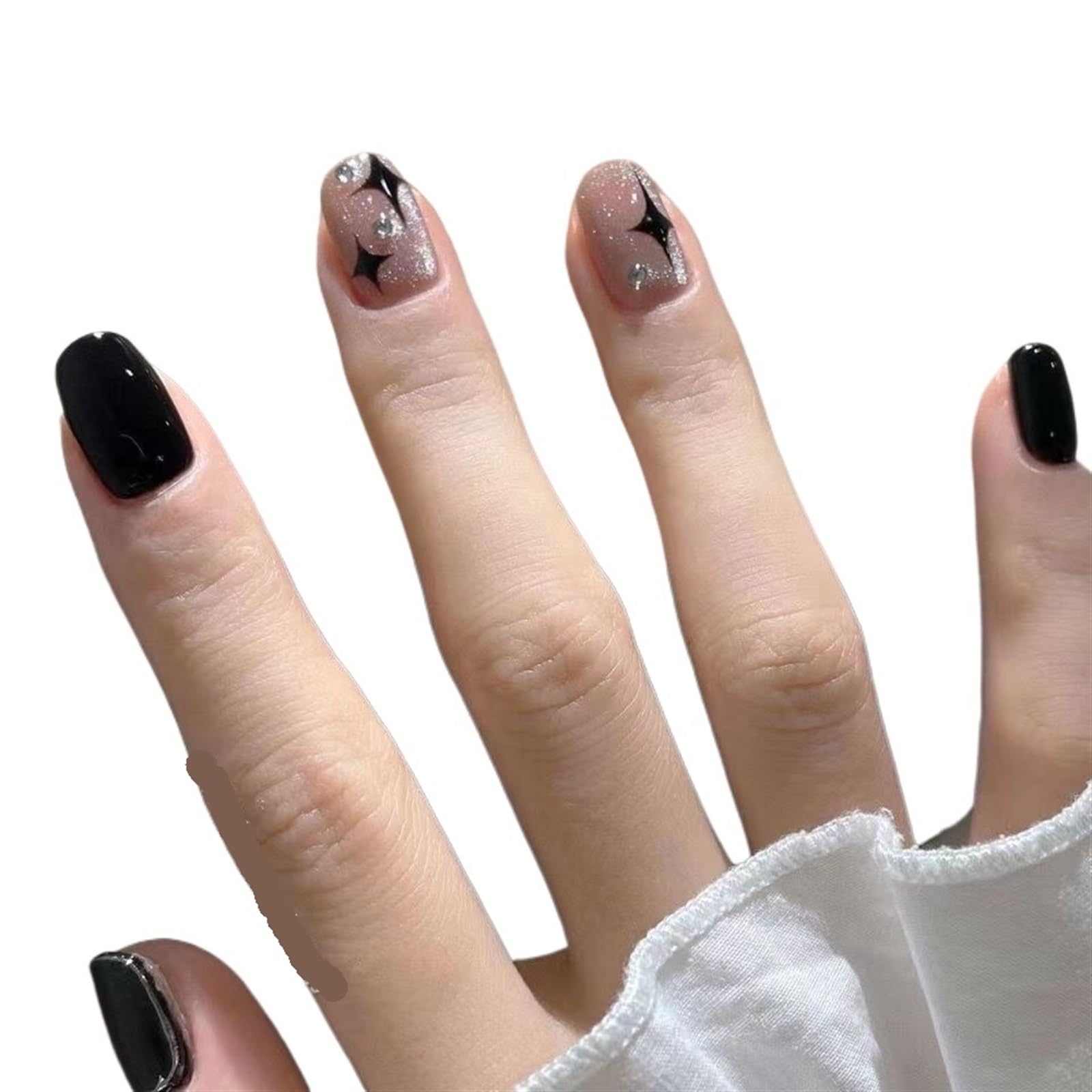 Nail patches fake nails wearing nail polish waterproof black detachable reusable(M)