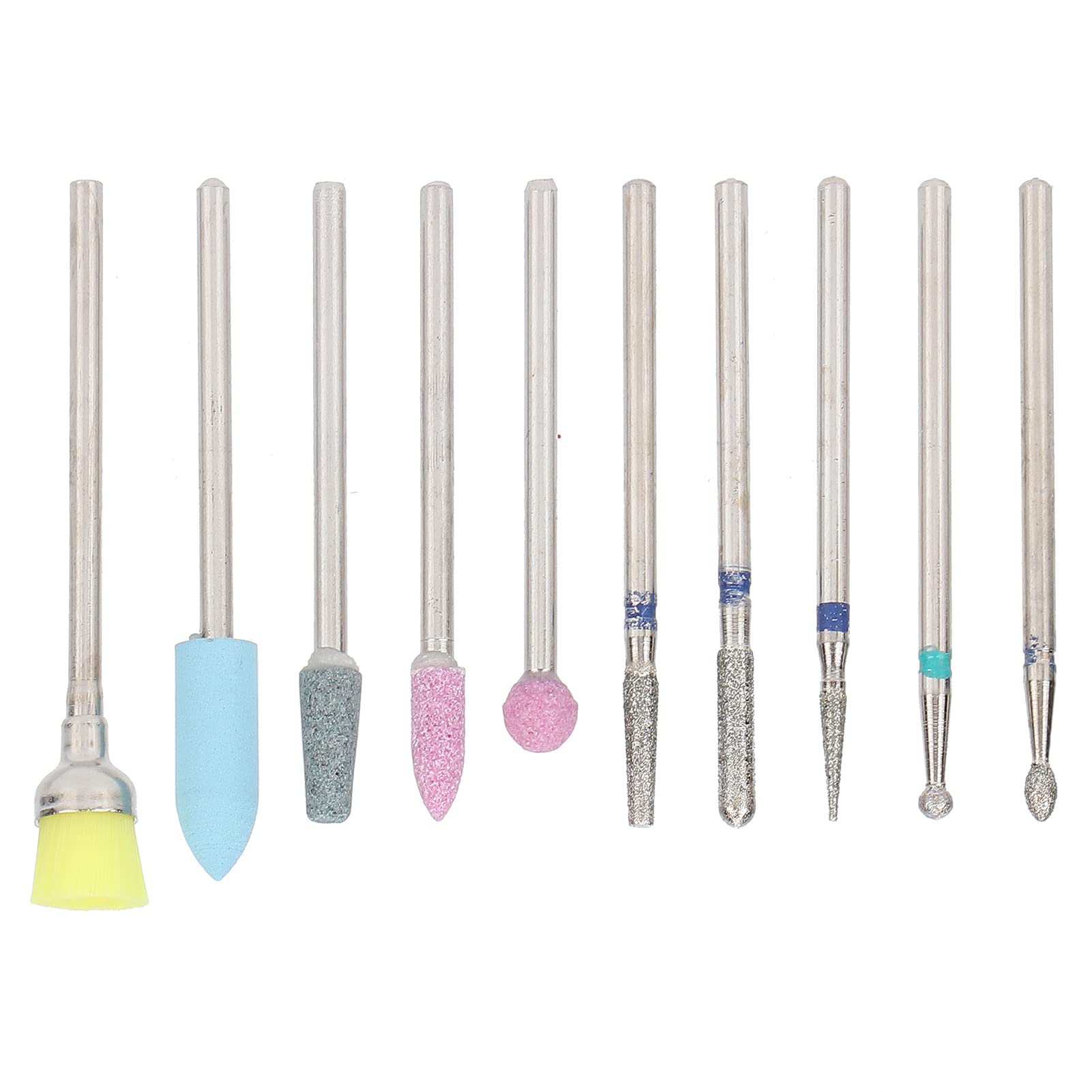 Feature: 1. Complete Functions: Interchangeable use, can be rotated back and forth, remove nail polish, remove dead skin, and other functions, easy to use. 2. Multifunctional: It can meet the needs of different nail art, and can be used for manicure, nail removal, nail polishing and exfoliation. 3. Practical: The universal 2.35mm tool holder diameter is suitable for most grinders on the market. 4. Applicability: It is very suitable for nail salons, beauty shops, spas or corporal manicure or pedicure. 5. Gentle and Smooth: Protect your skin from damage through exquisite craftsmanship and rigorously tested design, suitable for nail technicians or beginners. Specification: Item Type: Nail Polishing Head Product Material: Emery, Quartz Product Specifications: 10 Pcs Set Product Handle Diameter: Approx. 2.35mm 0.09in Product Application: Household, Nail Salon, Etc. Package List: 10 x Nail Polishing Head 1 x Storage Box INGREDIENTS default default defaultMultifunctional: It can meet the needs of different nail art, and can be used for manicure, nail removal, nail polishing and exfoliation. Gentle and Smooth: Protect your skin from damage through exquisite craftsmanship and rigorously tested design, suitable for nail technicians or beginners. Applicability: It is very suitable for nail salons, beauty shops, spas or corporal manicure or pedicure. Practical: The universal 2.35mm tool holder diameter is suitable for most grinders on the market. Complete Functions: Interchangeable use, can be rotated back and forth, remove nail polish, remove dead skin, and other functions, easy to use. Complete Functions: Interchangeable use, can be rotated back and forth, remove nail polish, remove dead skin, and other functions, easy to use.