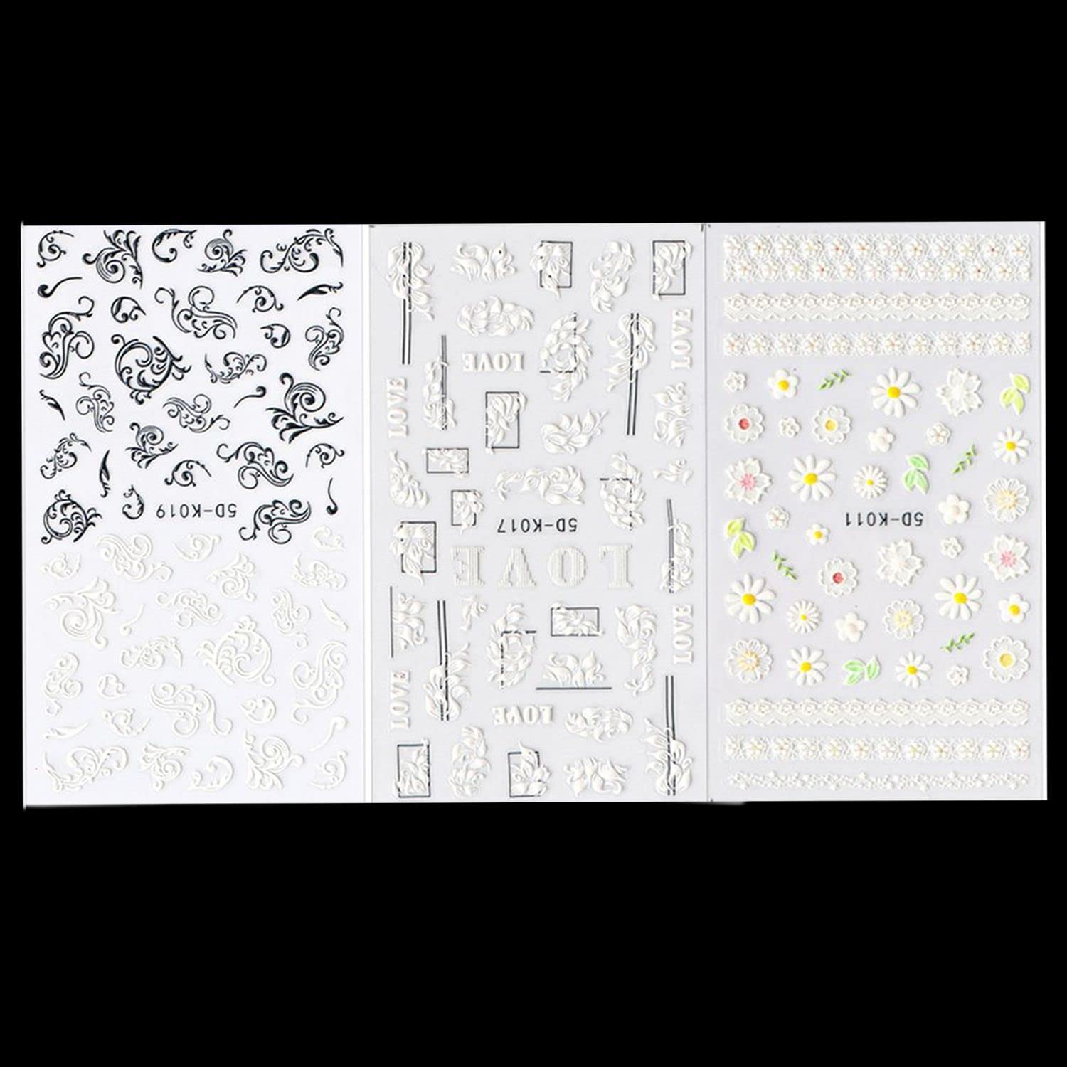 Suitable For Pro Salon or Home DIY Use. 5D Embossed Nail Sticker,vivid and elegant. Back Glue feature,easy to apply. DIY Nail Art Beauty Sticker. 100% New Arrival and High Quality.