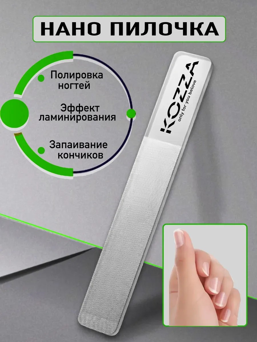 Стеклянная нано-пилка — это профессиональный инструмент, который идеально подходит для ухода за ногтями как в маникюре, так и в педикюре. Благодаря своей многоразовой конструкции, она обеспечивает высокую эффективность и долговечность использования. Эта маленькая полировочная пилка идеально полирует натуральные ногти, придавая им красивый блеск. Лазерная обработка поверхности гарантирует бережное воздействие на ногтевую пластину, предотвращая её повреждение. Кроме того, данный продукт удобен в использовании благодаря своей миниатюрной форме, что позволяет легко маневрировать даже в труднодоступных местах. Пилка подходит как для женского, так и для мужского маникюра, что делает её универсальным аксессуаром для домашнего и профессионального ухода. Нано-пилка идеально подходит для тех, кто ценит качественный уход за ногтями и хочет сохранить их здоровье и привлекательность на долгое время. Бренд KOZZA гарантирует качество и надежность своего продукта, делая его отличным выбором для тех, кто ценит красоту и здоровье своих ногтей.