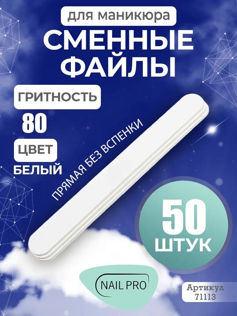 NAILPRO Сменные файлы для маникюра прямая без вспенки #80 (50 шт.)