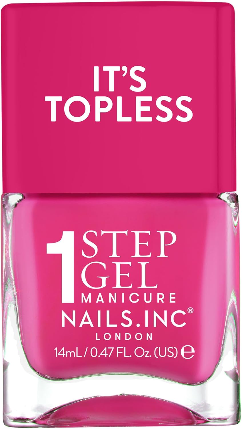 Nails Inc It's Topless Gel Nail Polish 4-in-1 Base Coat Treatment Colour & Top Coat Long Lasting Strong Chip Free Nails Glossy Salon Quality Manicure Air Dry Nail Polish - Intense Hot Pink - 0.47 Oz