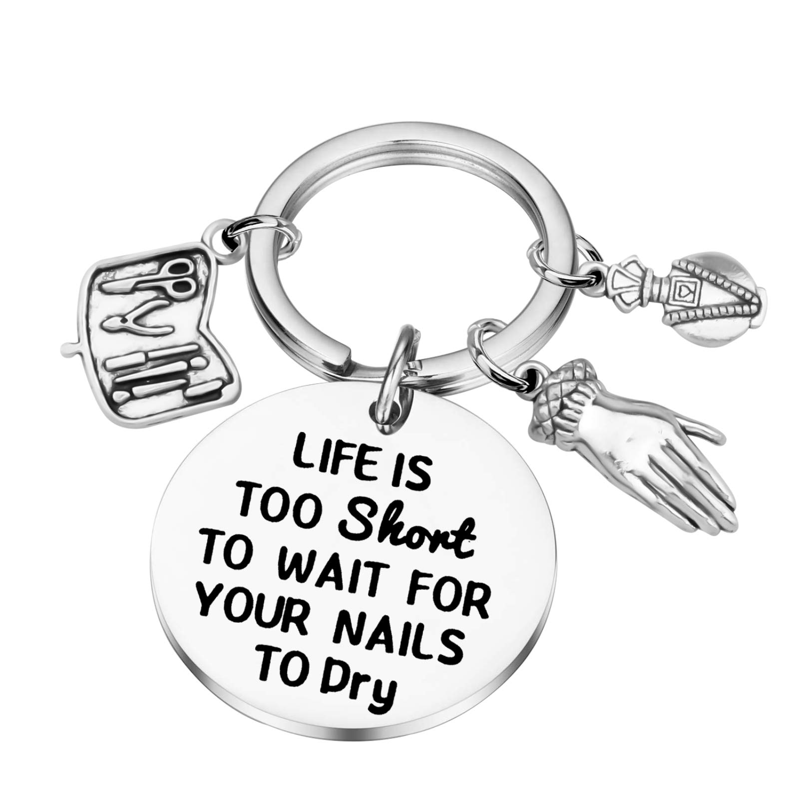 We will make each gift with the full heart, thanks for your attention again. ?Color Street Stylists....Take amazing nailfies for your social media! This nail tech keychain would make a perfect birthday or Christmas gifts for your nail family, friend, worker, boss. ?Measurement: 30mm(1.18"). TIPS:manual measuring permissible error. ?Material: Made of Environmentally Friendly top material Stainless Steel, Safety and environmental protection. Cubic Zirconia, no harm to skin and never fade color and non-deformation. ?Nail Technician Gifts - “LIFE IS TOO Short TO WAIT FOR YOUR NAILS TO Dry.” Cute nail tech keychain is an amazing gift for any Nail Salon Owner or Nail Artist.