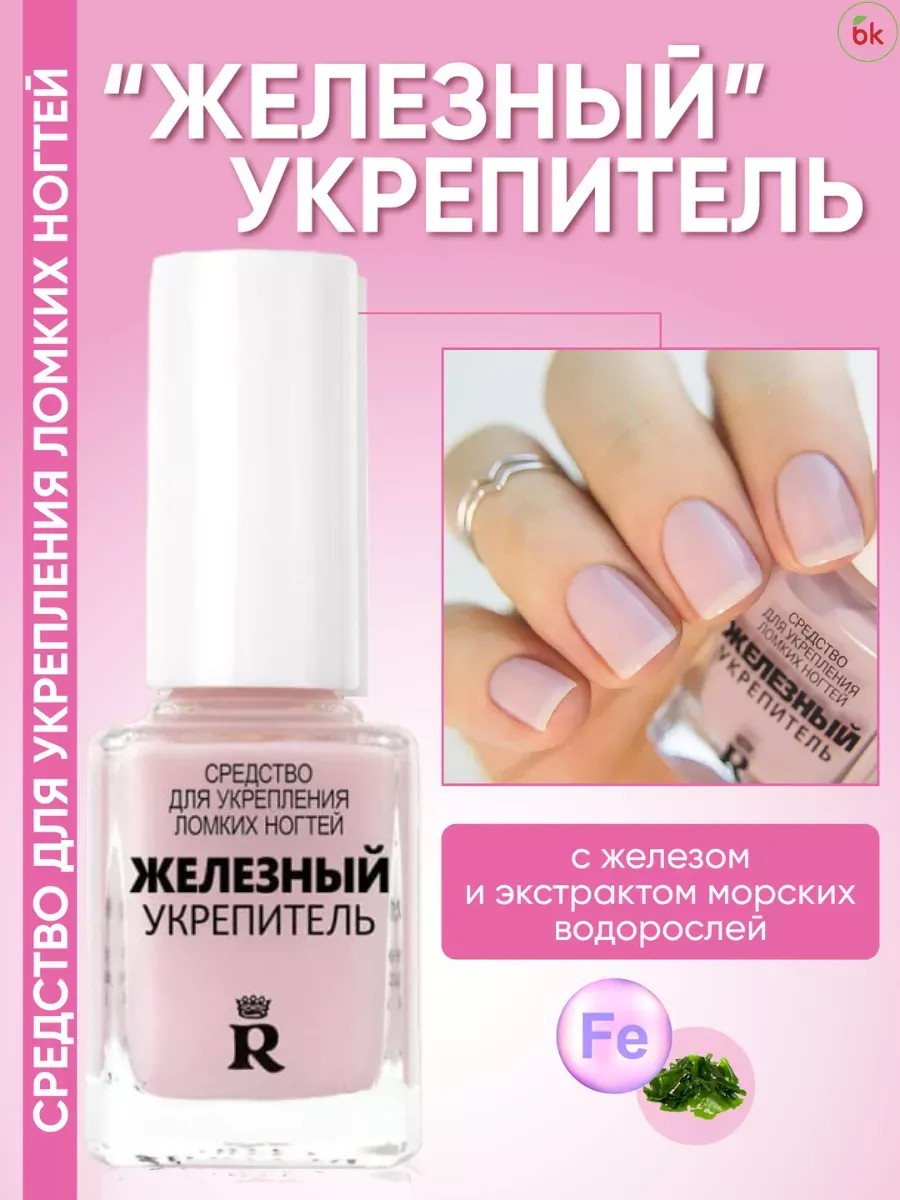 Средство для укрепления ломких ногтей «Железный укрепитель» от белорусского бренда RELOUIS уже завоевало сердца многих и полностью оправдывает своё название. Хотите иметь крепкие, как железо, ногти? Железо является важным компонентом ногтевой пластины, защищает её и питает минеральными солями. «Железный» укрепитель для ломких ногтей не только укрепляет ваши ногти, но и делает их эластичными. А экстракт морских водорослей, входящий в состав средства, восстанавливает структуру ногтевой пластины. Нанесите один слой лака и можете использовать его как основу под лак. Если же нанести два слоя, ваши ногти приобретут натуральный розовый оттенок. «Железный» укрепитель от Релуи защищает ногти от ломкости и придаёт им невероятно красивый вид.
