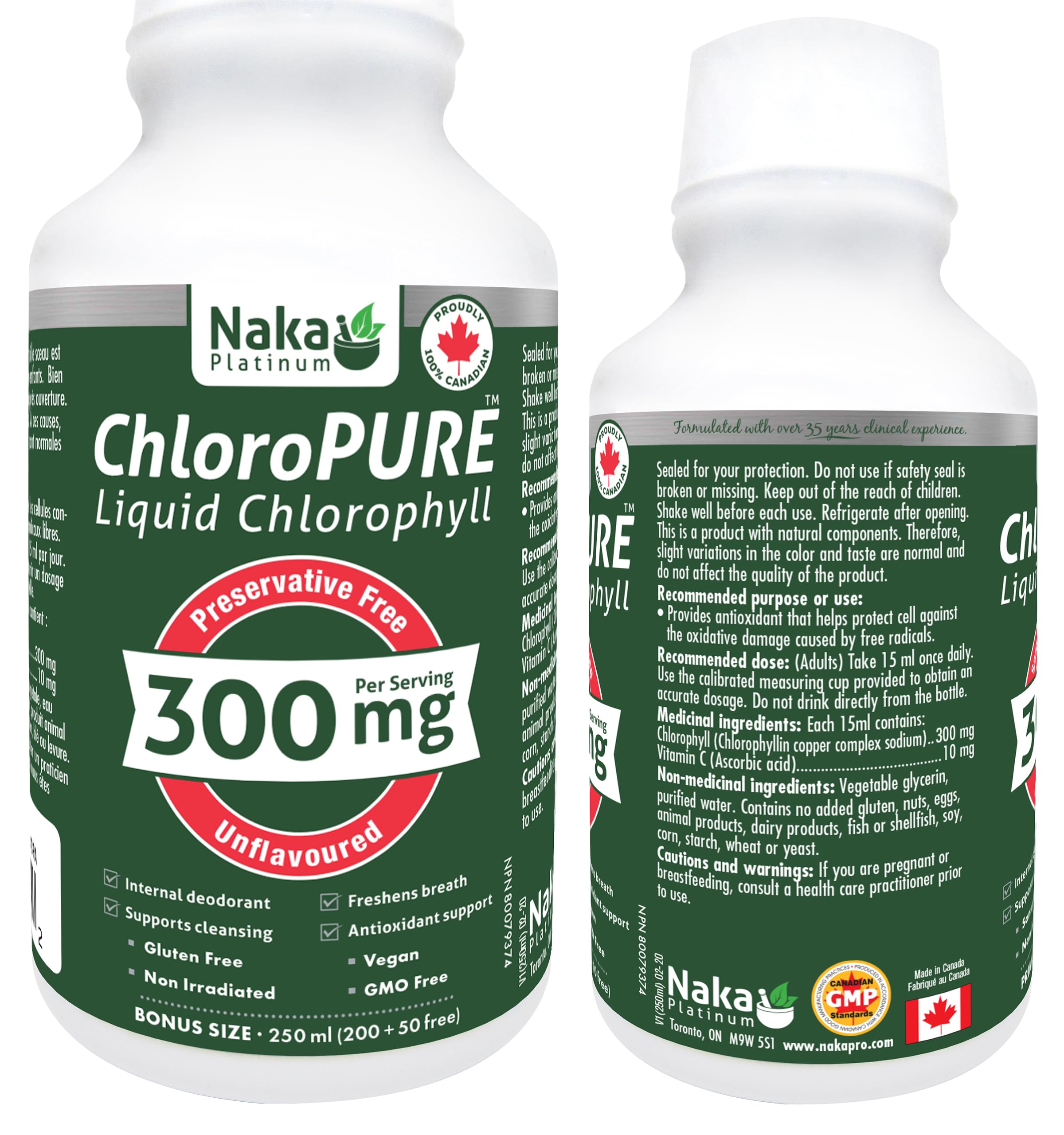 Naka Platinum ChloroPURE Liquid Chlorophyll provides antioxidant that helps protect cells against the oxidative damage caused by free radicals. Liquid Chlorophyll supports cleansing it acts as an internal deodorant and freshens breath. Naka Platinum Chlorophyl contains NO added gluten, nuts, eggs, animal products, dairy products, fish or shellfish, say, corn, starch, wheat or yeast. Unflavoured.