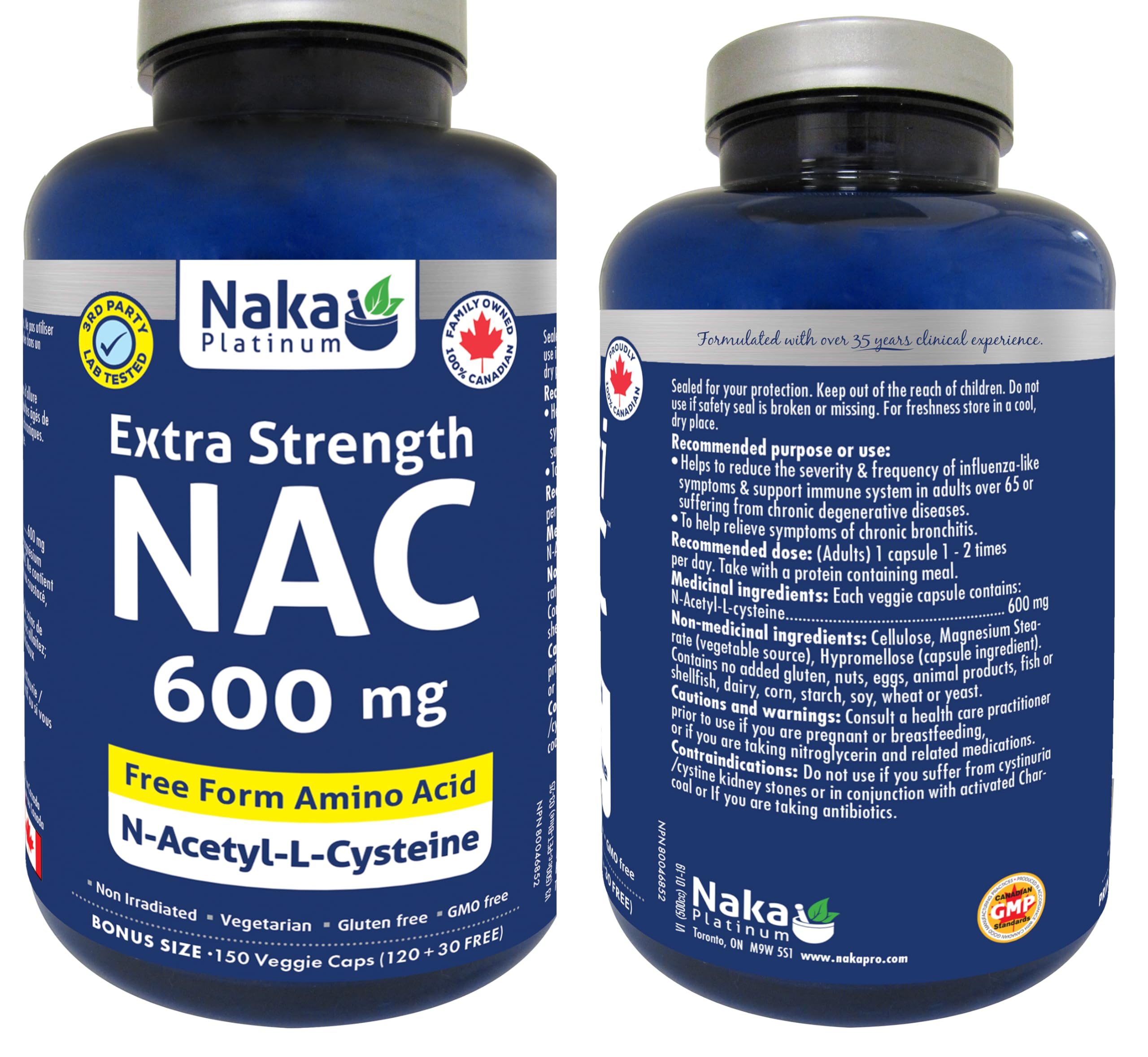 Naka Platinum Nutri NAC (N-Acetyl-L-cysteine) 600 mg per Capsule - Bonus Size 150 Veggie Capsules (120+30 Free)