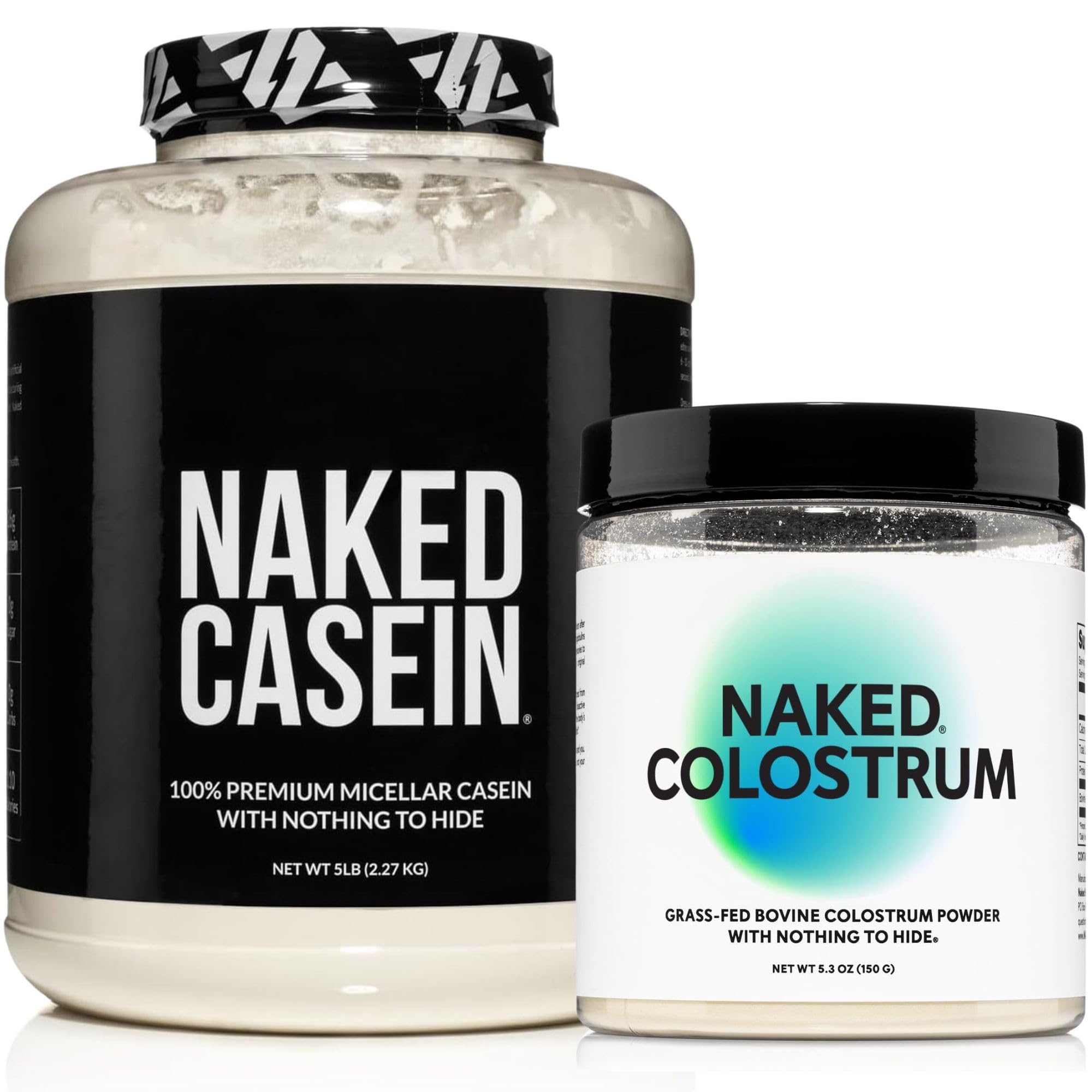 NAKED Casein Protein Powder 5LB (76 Servings) Colostrum Powder (150 Servings) Bulk GMO-Free Gluten Free Soy Free Preservative Free