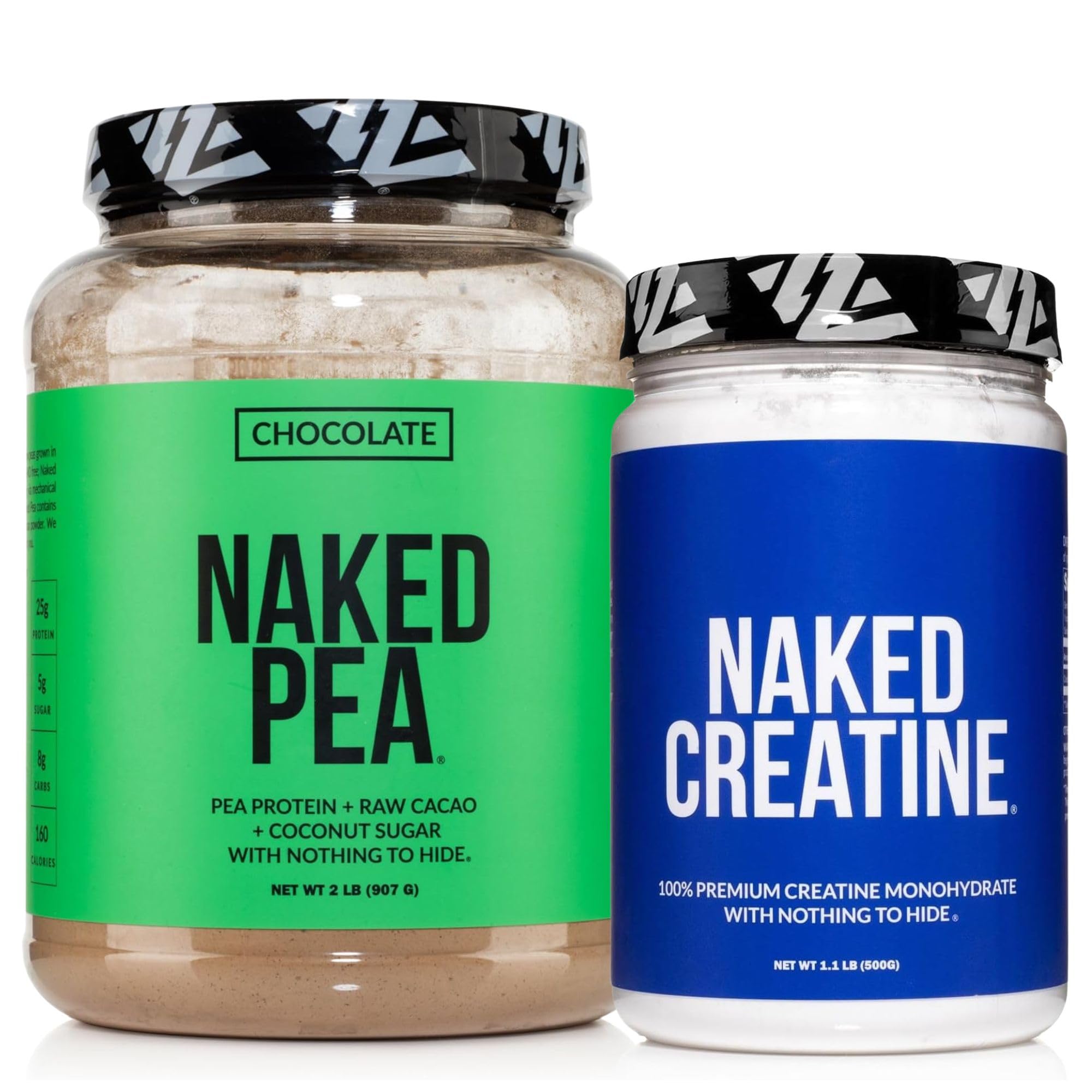 NAKED Chocolate Pea Protein Isolate 2LB Pure Micronized Creatine Monohydrate 500g (100 Servings) Vegan Bulk Non-GMO Gluten Free Soy Free