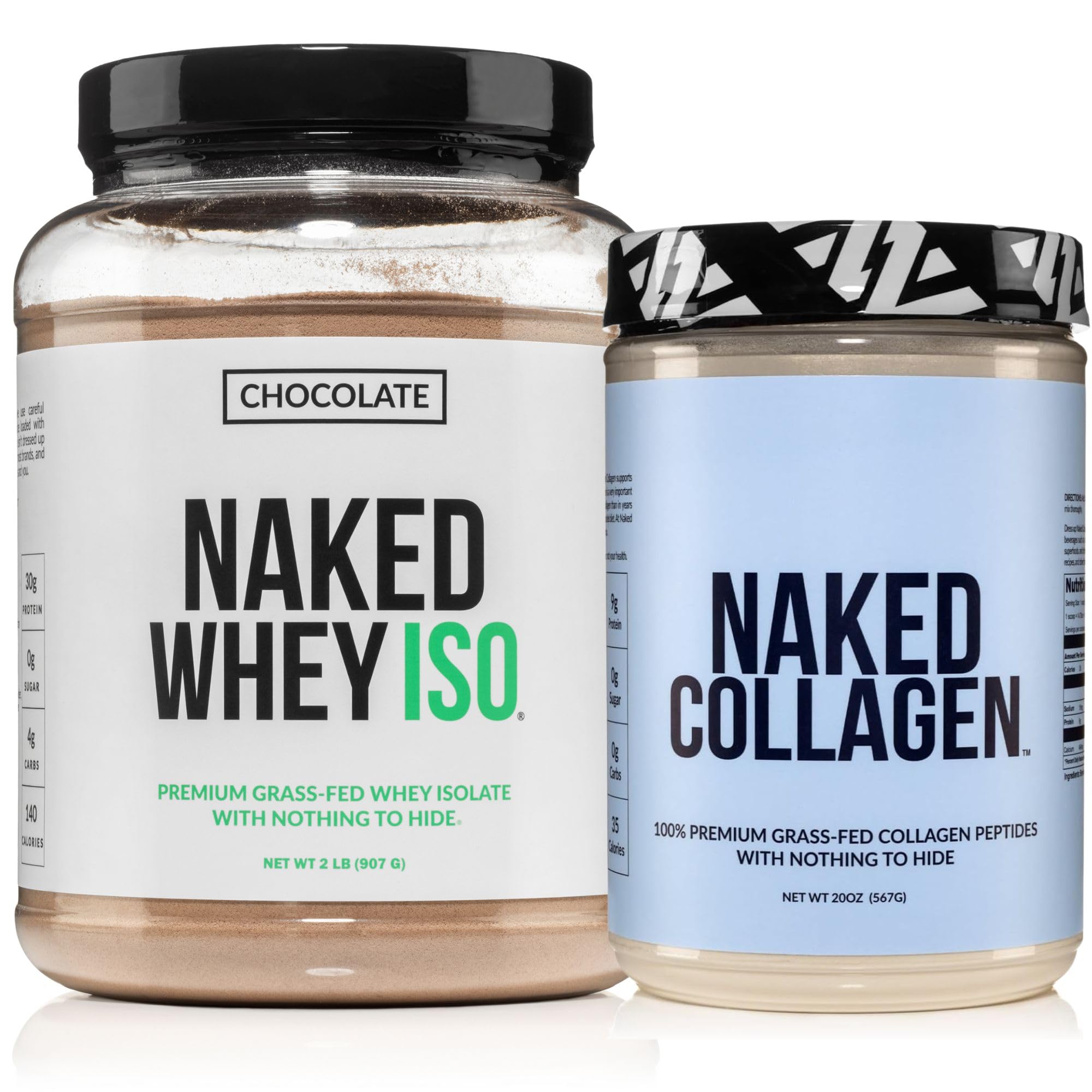 NAKED Chocolate Whey Isolate Protein Powder (24 Servings) Collagen Peptides Protein Powder 20oz (60 Servings) Grass-Fed Pasture-Raised Non-GMO Gluten Free Keto Paleo Friendly
