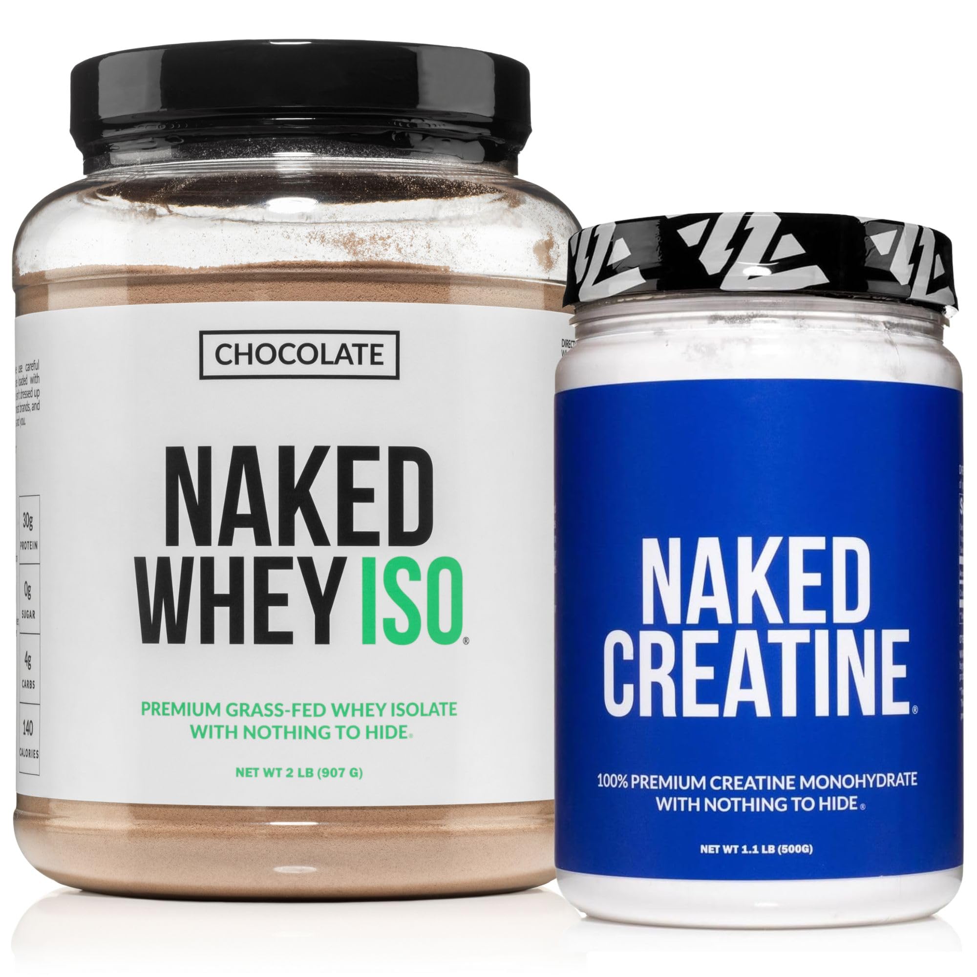NAKED Chocolate Whey Isolate Protein Powder (24 Servings) Pure Micronized Creatine Monohydrate 500g (100 Servings) Grass-Fed Bulk Non-GMO Gluten Free Soy Free