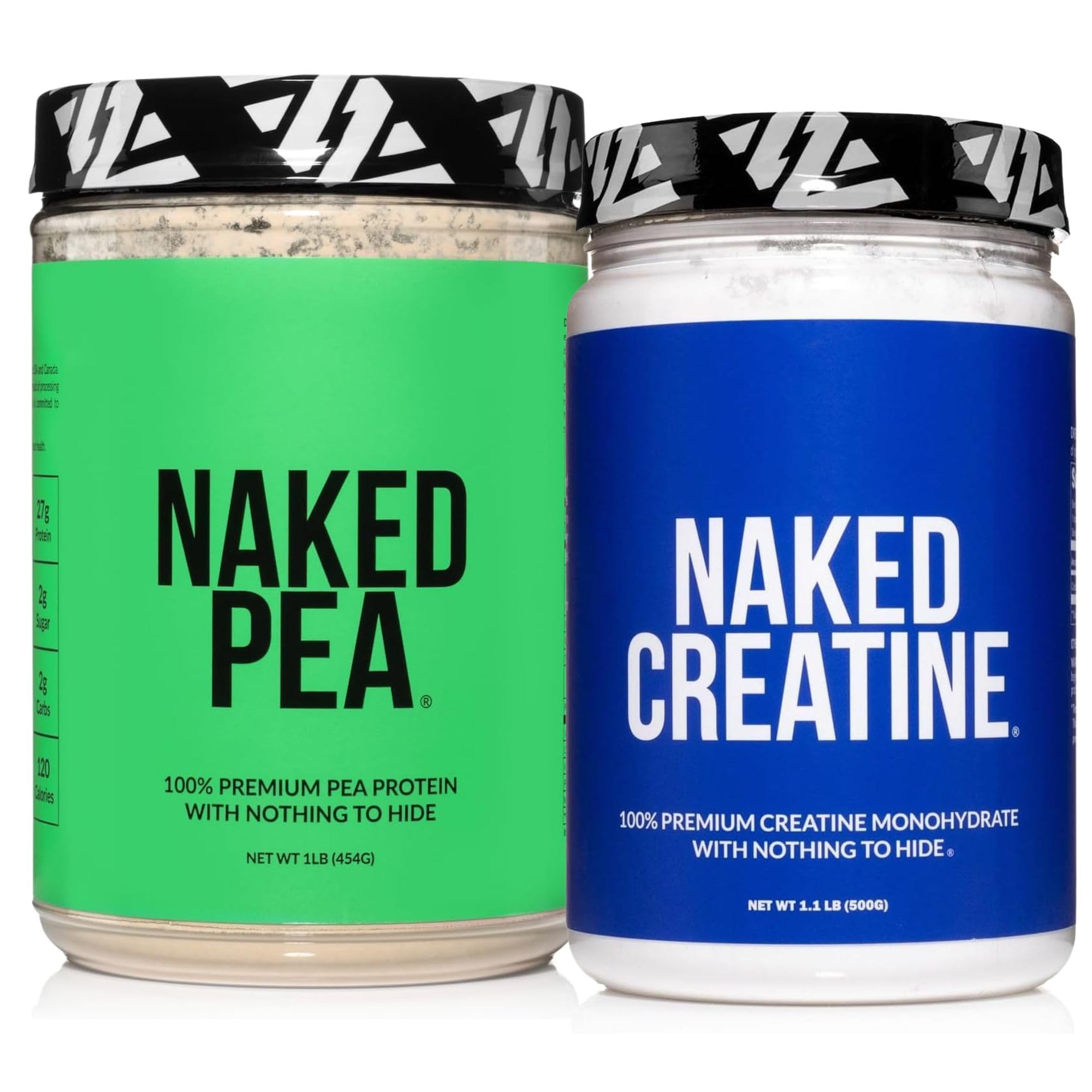 NAKED Pea Protein Isolate (15 Servings) Pure Micronized Creatine Monohydrate 500g (100 Servings) Plant-Based Vegan Bulk Non-GMO Gluten Free Soy Free Unflavored