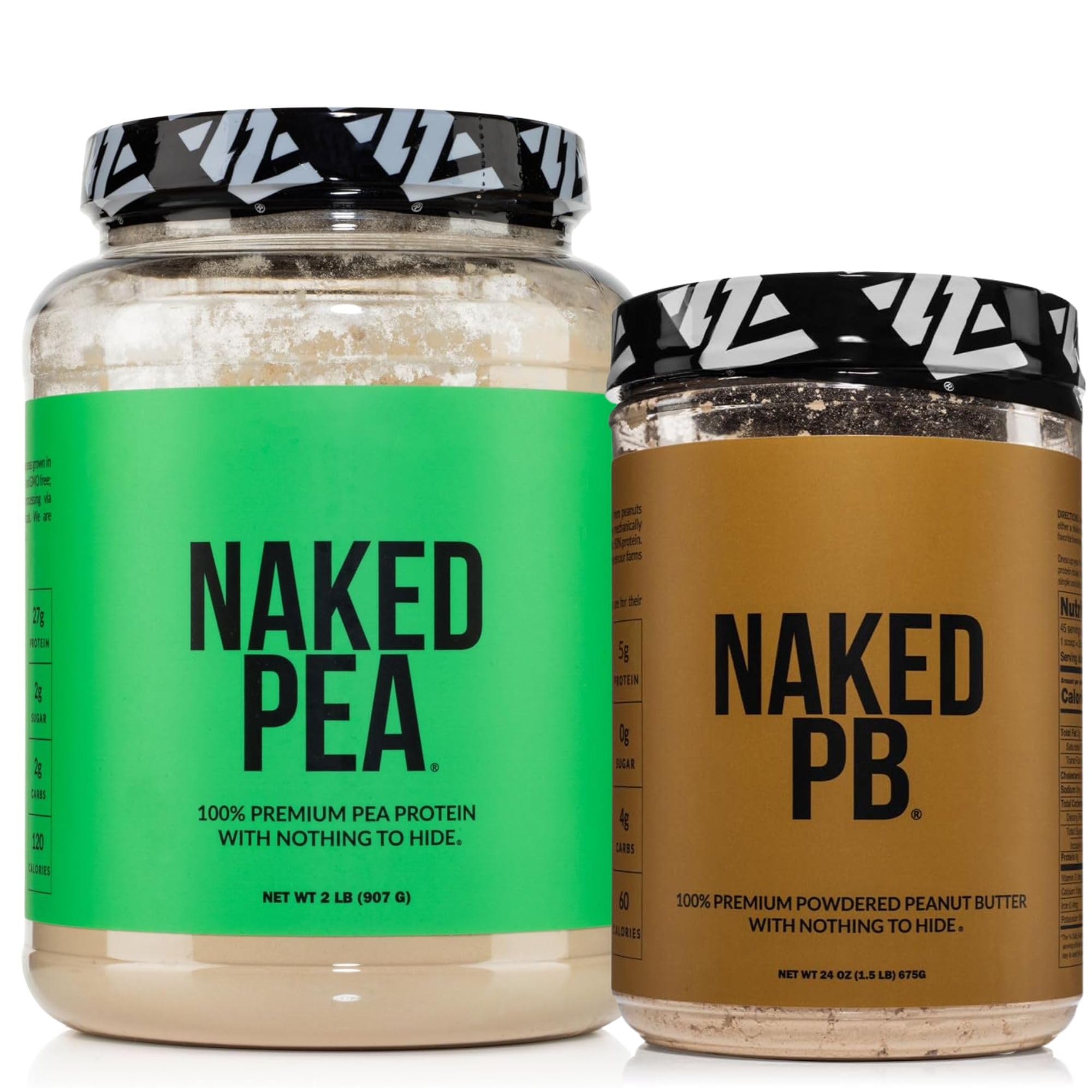 NAKED Pea Protein Powder 2LB (30 Servings) PB Powdered Peanut Butter 1.5LB (45 Servings) Vegan Bulk Non-GMO Gluten Free Soy Free