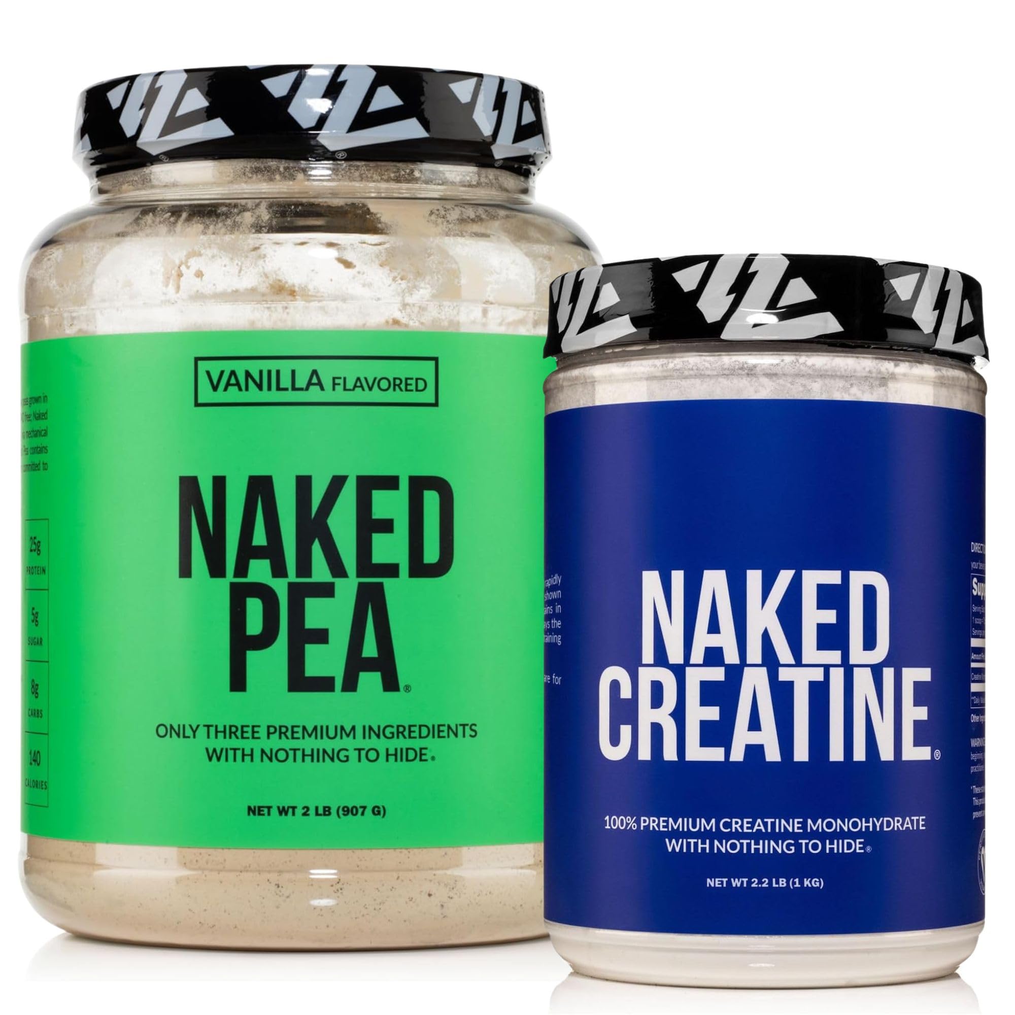 NAKED Vanilla Pea Protein Isolate 2LB Pure Micronized Creatine Monohydrate 1 000g (200 Servings) Vegan Bulk Non-GMO Gluten Free Soy Free