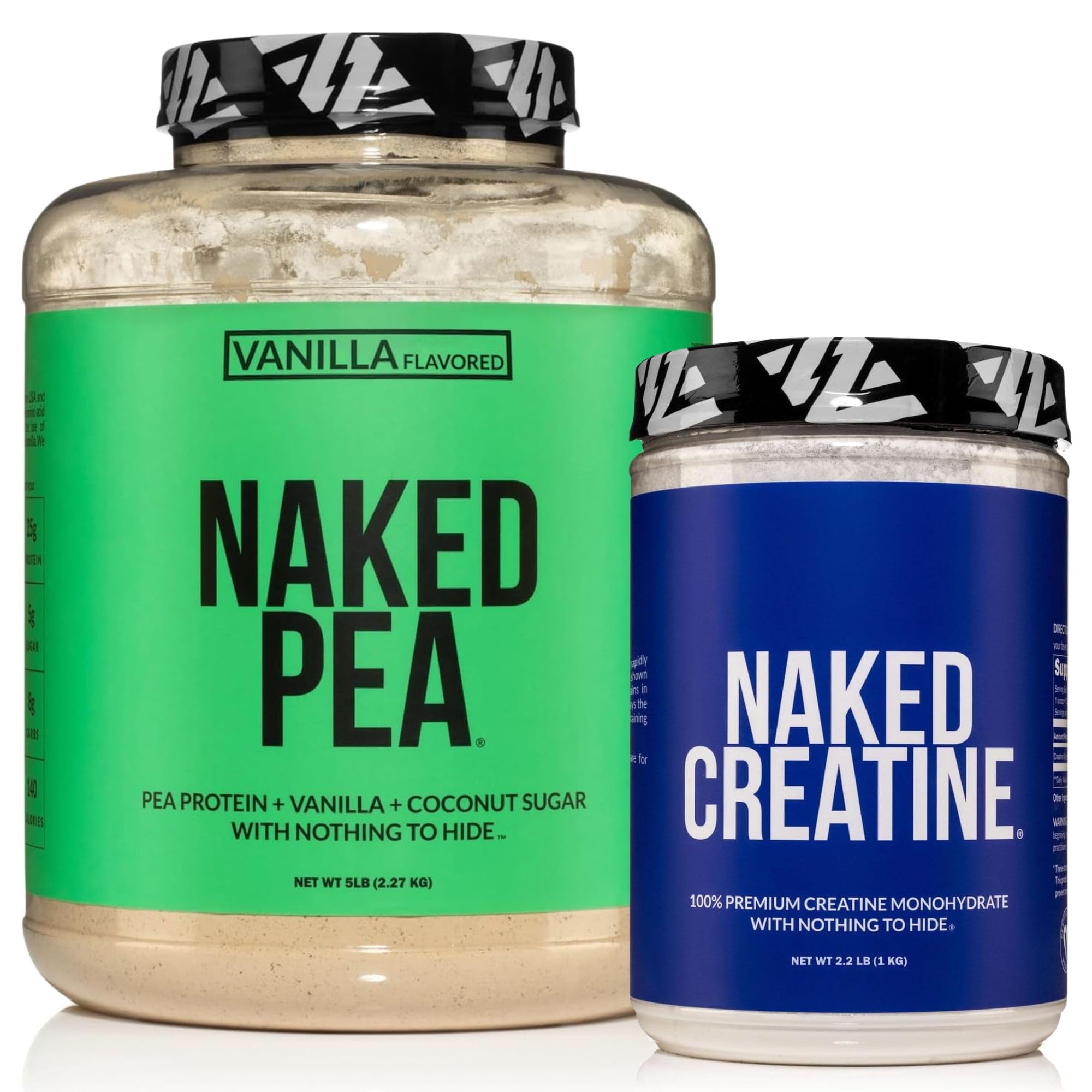 NAKED Vanilla Pea Protein Isolate 5LB Bulk + Pure Micronized Creatine Monohydrate 1 000g (200 Servings) Plant-Based Vegan Non-GMO Gluten Free Soy Free