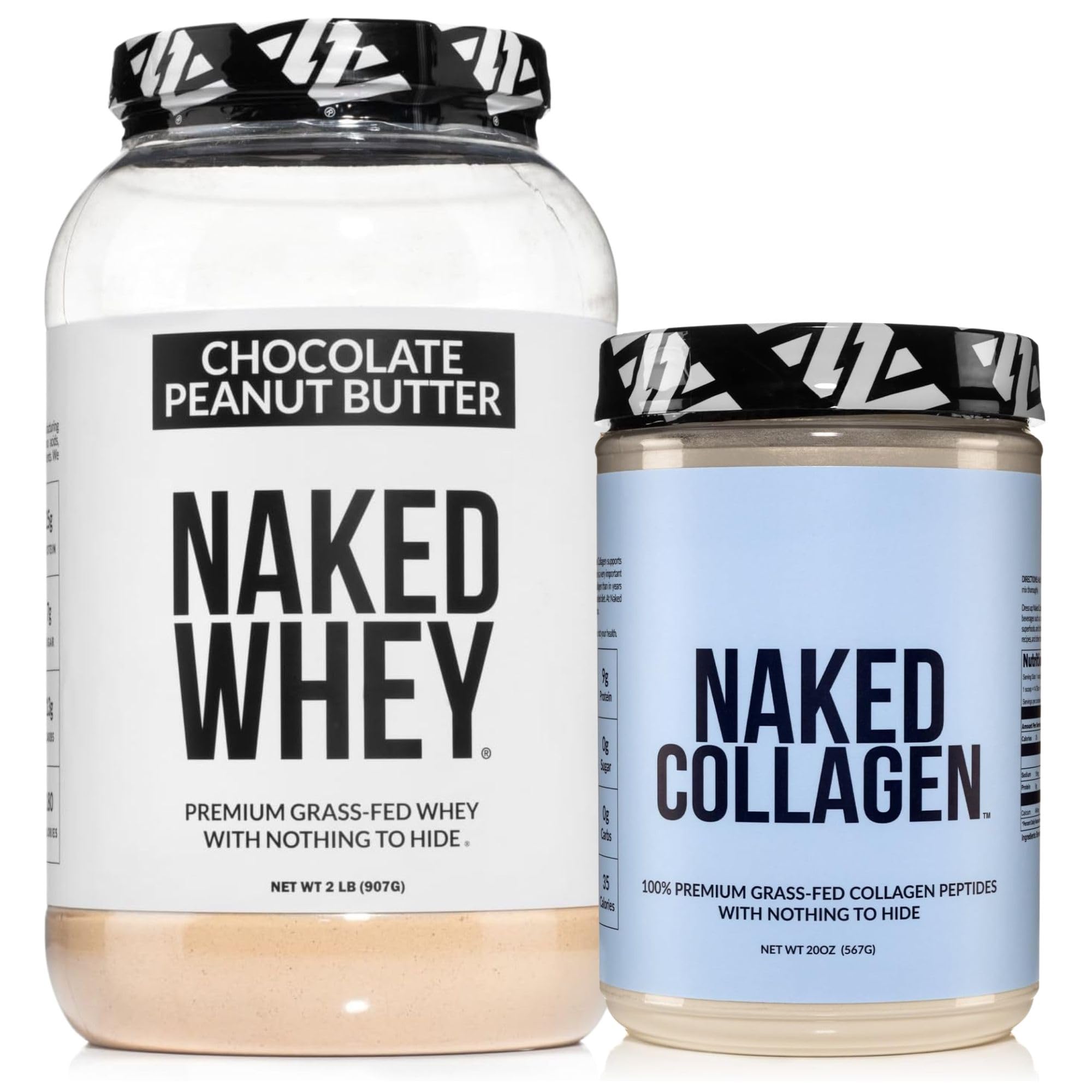 NAKED Whey Chocolate Peanut Butter Protein Powder (21 Servings) + Collagen Peptides Protein Powder 20oz (60 Servings) Grass-Fed Non-GMO Gluten Free Soy Free