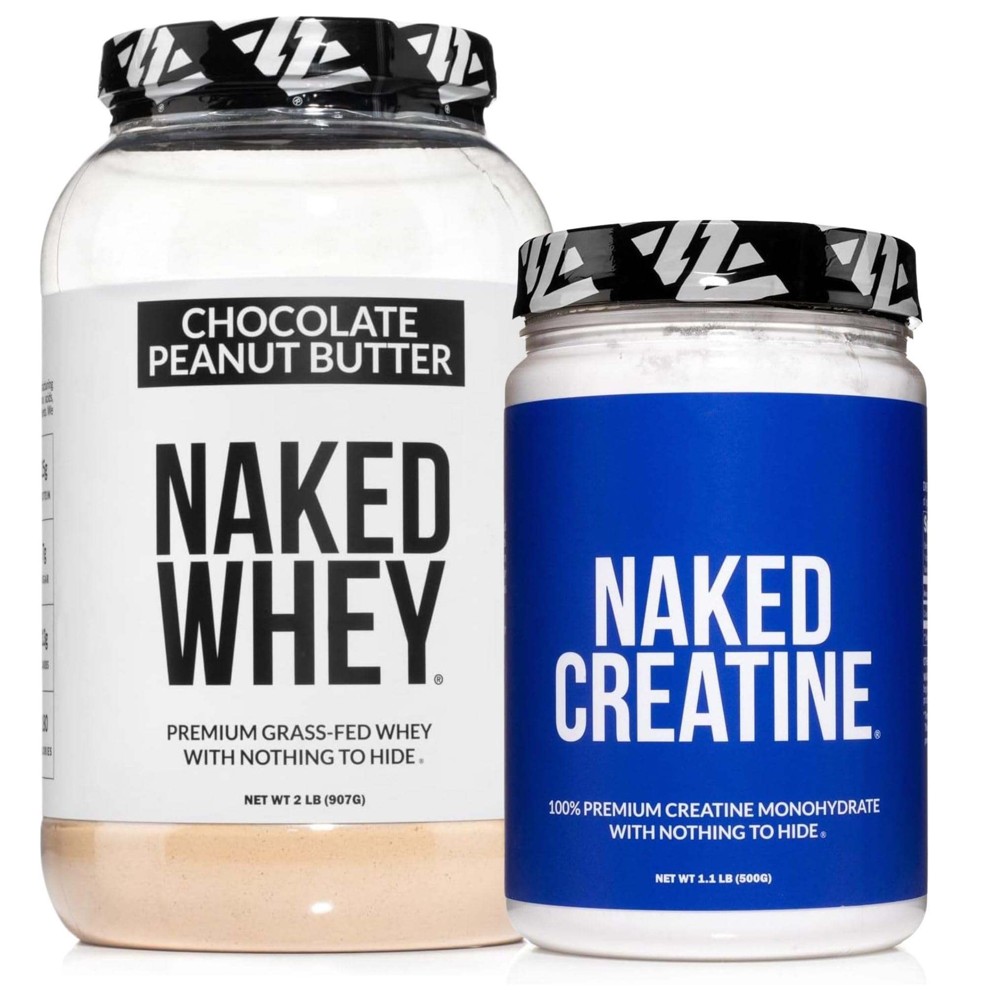 NAKED Whey Chocolate Peanut Butter Protein Powder (21 Servings) + Pure Micronized Creatine Monohydrate 500g (100 Servings) Grass-Fed Bulk Non-GMO Gluten Free Soy Free