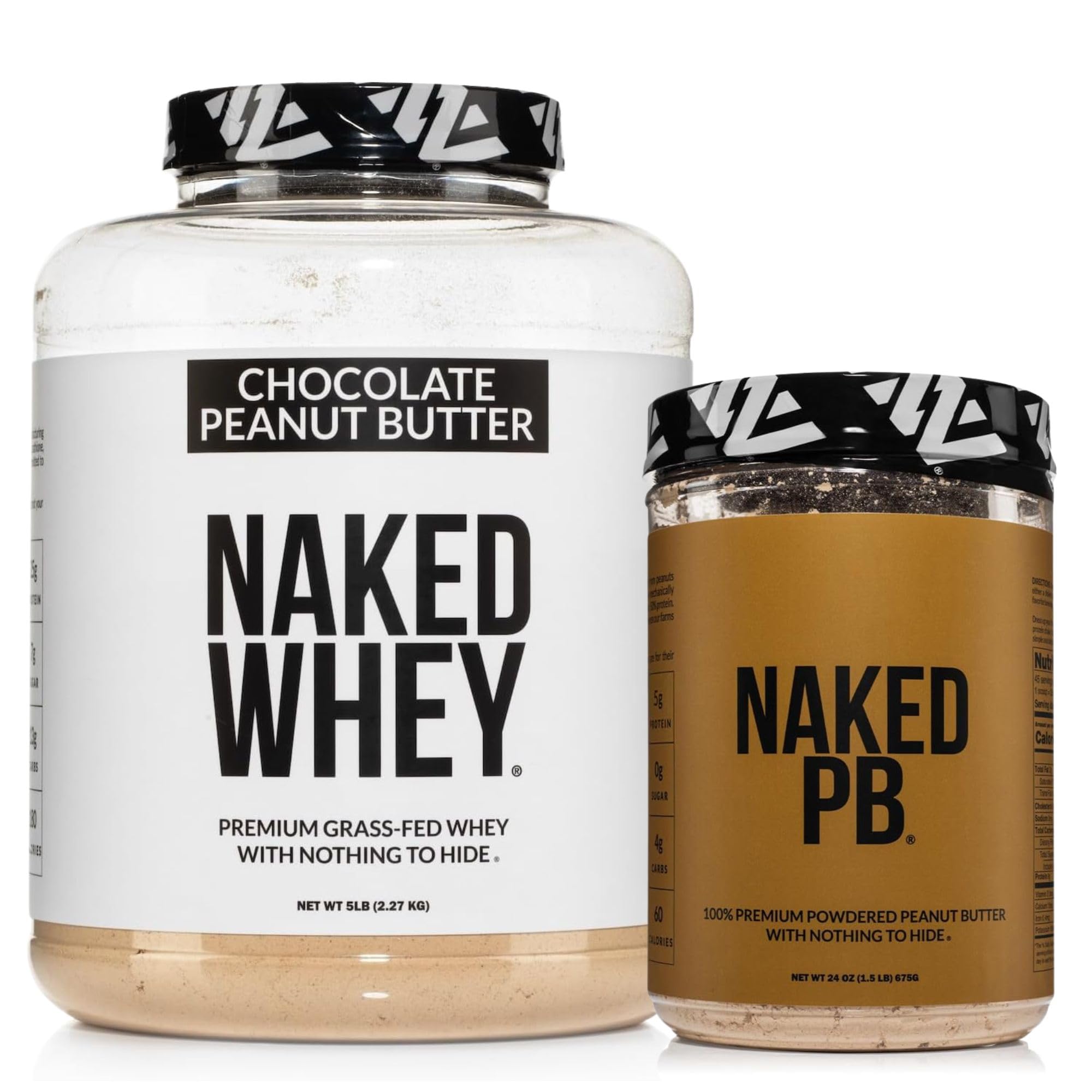 NAKED Whey Chocolate Peanut Butter Protein Powder (52 Servings) + PB Powdered Peanut Butter 1.5LB (45 Servings) Grass-Fed Non-GMO Gluten Free Soy Free Bulk