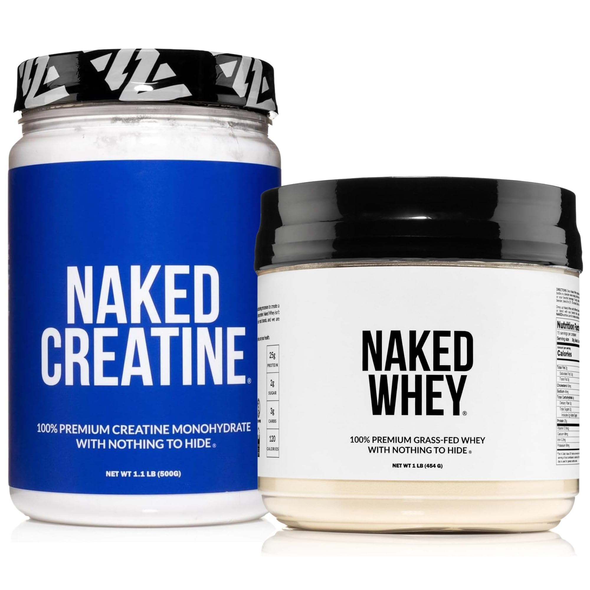 NAKED Whey Protein Powder 1LB (15 Servings) Pure Micronized Creatine Monohydrate 500g (100 Servings) Grass-Fed Bulk Non-GMO Gluten Free Soy Free