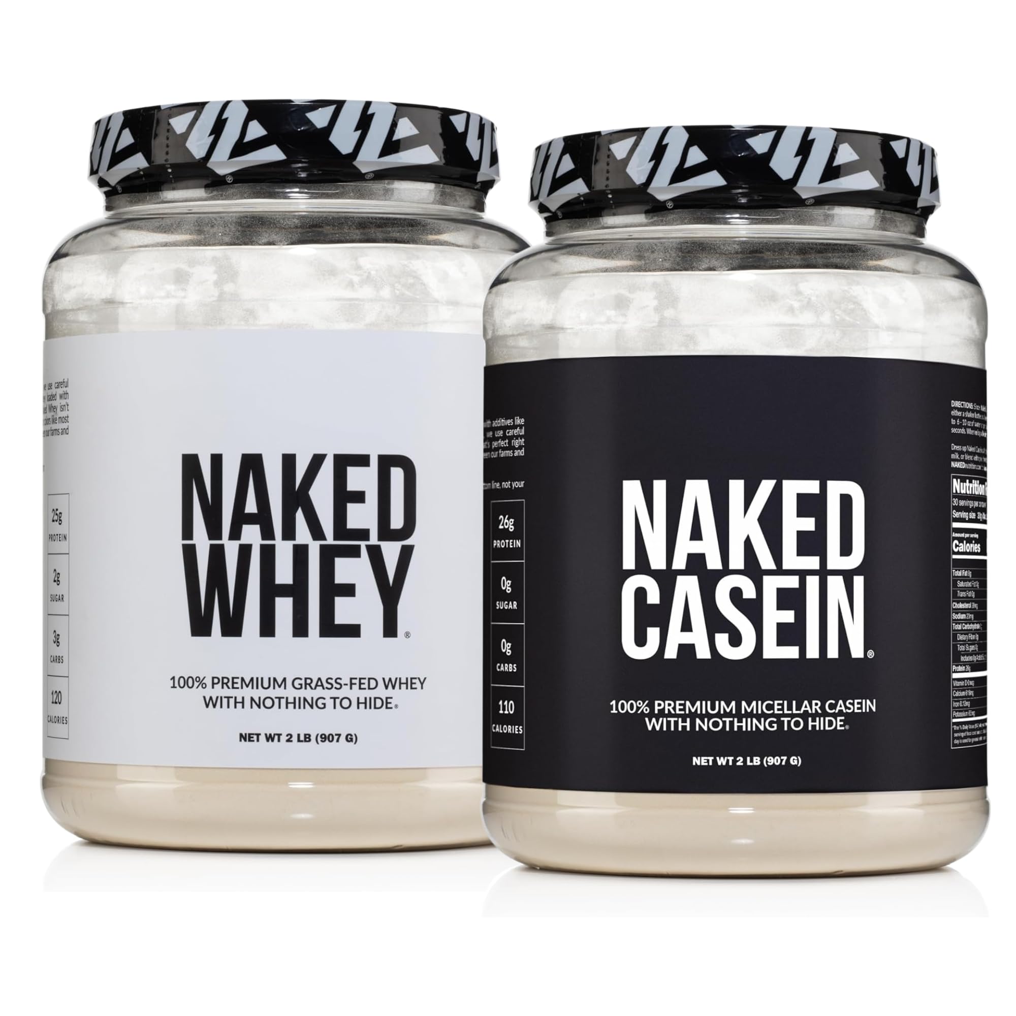 NAKED Whey Protein Powder 2LB (Unflavored) + Casein Protein Powder 2LB (30 Servings) GMO-Free Gluten Free Soy Free Preservative Free