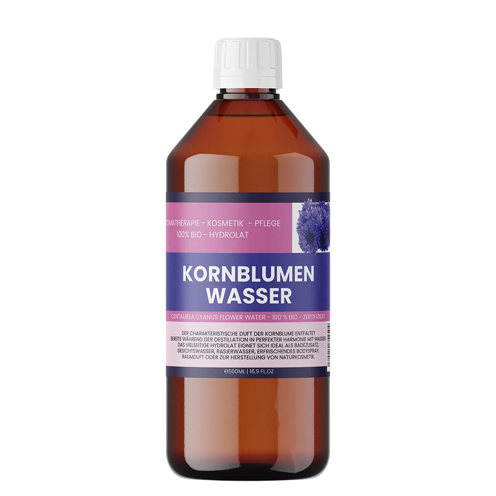 Our cornflower water (Centaurea Cyanus Flower Water) is a naturally pure hydrolate from the water vapor distillation of fresh cornflower flowers. It is completely alcohol-free, vegan and additive-free – ideal for sensitive skin and eyes. As a gentle facial water, tonic, pillow spray or as a refresher on the go – this floral water is versatile. Particularly popular in natural cosmetics, as it is very well tolerated and has a subtle, spicy scent. The light-resistant PET brown 250 ml bottle reliably protects the plant water against loss of quality and makes it particularly practical to use. INGREDIENTS Centaurea Cyanus Flower Water SAFETY WARNING After opening, store in a cool, dark and tightly closed place. Use as soon as possible. See moreMade in the EU: gently distilled and processed under controlled conditions, high quality, safe and responsible. Freshly filled and traceable: with batch number and minimum expiration date on the label – for maximum transparency and quality guarantee. ✓ Versatile use: as a facial toner, compress, pillow spray or DIY ingredient – also ideal for refreshment in between. Vegan and plant-based origin: free from fragrances, preservatives and animal testing, ideal for DIY cosmetics and clean beauty. 250 ml in light-resistant PET brown bottle: ideal for storage and use - can be used with screw cap and optional spray attachment. For face and eye care: Traditionally used in natural cosmetics for the care of the sensitive skin around the eyes, also as a gentle facial water. 100 natural cornflower hydrolate: made by gentle water vapor distillation from the flowers of Centaurea cyanus - without alcohol, without additives.Centaurea Cyanus Flower Water, 500 ml (2 x 250 ml) Centaurea Cyanus Flower Water, zuiver bloemhydrolaat zonder alcohol, voor gezicht, ogen en doe-het-zelf cosmetica, veganistisch en plantaardig, 500 500 ml (1er Pack) Ons korenbloemwater (Centaurea Cyanus Flower Water) is een natuurlijk zuiver hydrolaat uit de waterdampdestillatie van verse korenbloembloemen. Het is volledig alcoholvrij, veganistisch en zonder toevoegingen – ideaal voor de gevoelige huid en de ogen. Als zacht gezichtswater, tonicum, kussenspray of als verfrissing onderweg – dit bloemenwater is veelzijdig inzetbaar. Bijzonder populair in natuurlijke cosmetica, omdat het zeer goed verdraagbaar is en een subtiele, kruidige geur heeft. De lichtbestendige PET-bruine fles van 250 ml beschermt het plantenwater betrouwbaar tegen kwaliteitsverlies en maakt het bijzonder praktisch in gebruik. INGREDIËNTEN Centaurea Cyanus Flower Water VEILIGHEIDSWAARSCHUWING Na het openen koel, donker en goed gesloten bewaren. Zo snel mogelijk gebruiken. Meer bekijkenGemaakt in de EU: voorzichtig gedestilleerd en verwerkt onder gecontroleerde omstandigheden, hoogwaardig, veilig en verantwoordelijk. Vers gevuld en traceerbaar: met batchnummer en minimale houdbaarheidsdatum op het etiket – voor maximale transparantie en kwaliteitsgarantie. ✓ Veelzijdig te gebruiken: als gezichtsstoner, kompres, kussenspray of doe-het-zelf-ingrediënt – ook ideaal voor verfrissing tussendoor. Veganistische en plantaardige oorsprong: vrij van geurstoffen, conserveringsmiddelen en dierproeven, ideaal voor doe-het-zelf cosmetica en schone beauty. 250 ml in lichtbestendige PET-bruine fles: ideaal voor opslag en gebruik – met schroefdop en optioneel spuitopzetstuk te gebruiken. Voor gezicht en oogverzorging: traditioneel gebruikt in natuurlijke cosmetica voor de verzorging van de gevoelige huid rond de ogen, ook als zacht gezichtswater. 100 natuurlijk korenbloemhydrolaat: gemaakt door zachte waterdampdistillatie uit de bloemen van Centaurea cyanus – zonder alcohol, zonder toevoegingen.