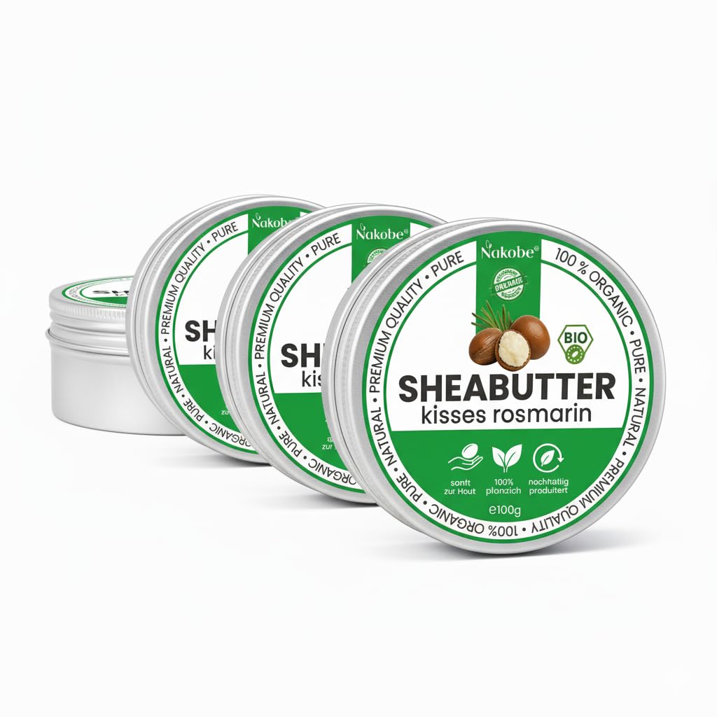 Refreshing, invigorating, natural – Kisses Rosemary is a rich foot treatment that revitalizes tired, heavy feet. The combination of organic shea butter, almond oil, beeswax, and rosemary essential oil intensely nourishes, regenerates, and revitalizes stressed skin. Ideal after long days of work, walking, or sports. The velvety texture absorbs pleasantly and leaves a feeling of freshness on the skin – without artificial additives or plastics. DIRECTIONS FOR USE Warm a small amount of shea butter between your hands and gently massage into your feet. Particularly suitable after a long day or a hot foot bath. For external use only. Store in a cool, dry place. SAFETY WARNING For external use only. Avoid contact with eyes and mucous membranes. Do not use on broken skin. Keep out of reach of children. Store in a cool, dry place away from light. See moreIdeal for tired feet and long days on your feet: soothing care after a long day – perfect for caregivers, athletes, waiters, and anyone who spends a lot of time on their feet. Delicate skin feel: almond oil nourishes and soothes irritated areas of skin, improves elasticity, and leaves feet feeling soft and velvety. Gentle and protective care: natural beeswax forms a breathable protective layer that locks in moisture without clogging pores. Toning and circulation-boosting: rosemary essential oil activates microcirculation, helps relieve tired, heavy feet, and provides a pleasant feeling of freshness. 100 natural base: pure organic shea butter as the main ingredient – rich in vitamins A, E, and F, it intensely moisturizes and protects dry, stressed skin.Beurre de karité bio Kisses Romarin 100 g - Baume pour les pieds à l'huile essentielle de romarin, à la cire d'abeille et à l'huile d'amande - Soin pour les pieds lourds et fatigués - Fabriqué à la 4DESCRIPTION DU PRODUIT DESCRIPTION DU PRODUIT Rafraîchissant, revigorant, naturel - Kisses Romarin est un soin riche pour les pieds qui revitalisent les pieds fatigués et lourds. La combinaison de beurre de karité biologique, d'huile d'amande, de cire d'abeille et d'huile essentielle de romarin nourrit intensément, régénère et revitalise les peaux sollicitées. Idéal après de longues journées de travail, de promenades ou de sport. La texture veloutée pénètre agréablement et laisse une sensation de fraîcheur sur la peau – sans additifs artificiels ni plastique. MODE D'EMPLOI Chauffez une petite quantité de beurre de karité entre les mains et massez doucement les pieds. Particulièrement adapté après une longue journée ou un bain de pieds chaud. Pour un usage externe uniquement. Conserver dans un endroit frais et sec. AVERTISSEMENT DE SÉCURITÉ Pour un usage externe uniquement. Éviter tout contact avec les yeux et les muqueuses. Ne pas utiliser sur une peau blessée. Tenir hors de portée des enfants. Conserver dans un endroit frais, sec et à l'abri de la lumière. Voir plusIdéal pour les pieds lourds et debout longtemps : soin apaisant après une longue journée - Parfait pour les soignants, les athlètes, les serveurs et tous ceux qui sont beaucoup sur leurs jambes. Sensation de peau délicate : l'huile d'amande nourrit et apaise les zones irritées de la peau, améliore l'élasticité et procure des pieds doux et veloutés. Soin doux et protecteur : la cire d'abeille naturelle forme une couche protectrice respirante qui emprisonne l'humidité sans obstruer les pores. Tonifiant et stimulant la circulation sanguine : l'huile essentielle de romarin active la microcirculation, aide à soulager les pieds fatigués et lourds et procure une agréable sensation de fraîcheur. Base de soin 100 naturelle : pur beurre de karité bio comme ingrédient principal - riche en vitamines A, E et F, hydrate intensément et protège la peau sèche et sollicitée.
