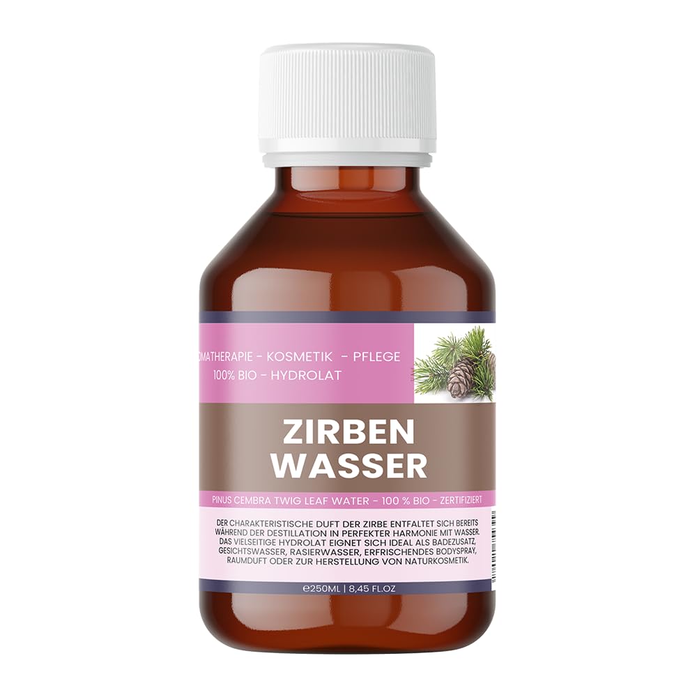 ? Sustainable conscious: environmentally friendly packaging and short transport routes for a product that is not only natural, but also responsible. Austria: delicately distilled in the Alps – directly from certified organic farming. ✓ MULTIPLE USES: ideal for misting rooms, scenting fabrics, or as a refreshing addition to DIY cosmetics. Pure natural pine hydrolate: made from fresh branches of Swiss stone pine (Pinus cembra) from the Alps, obtained through traditional steam distillation, without alcohol, preservatives, or artificial additives.