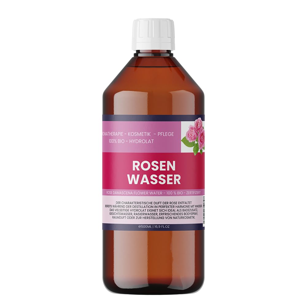 Hydrolat Rose Damascena Bio - "The queen of flowers". Our Rose Damascena Hydrolate spreads a very characteristic, soft floral scent. It reduces stress in hectic times and gives us a feeling of safety and security. With its soothing and nourishing properties, rose water is particularly suitable for sensitive baby skin. The hydrosol impresses with a wonderful scent of roses and leaves a relaxed skin feeling. In the summer you can use hydrosols as refreshment. For example, put Hydrolat Rose Damascena BIO in a brown glass bottle with spray attachment and spray on face and body. Extraction: water vapor distillation of flowers and leaves Finish: Hydrosols are used pure or as a water phase. Store cool and dark. Our hydrolate is filled in a recyclable PET plastic bottle. INGREDIENTS Rosa Damascena Flower Water INSTRUCTIONS FOR USE Spray rose water on face and body for refreshment. Use it as a facial water or hair spray. Keep it cool and dark. Use it in DIY cosmetics. SAFETY WARNING Store cool and dark See more✓ Natural scent and freshness: the soft rose scent has a soothing and refreshing effect on the skin and senses - perfect as an aromatherapy spray for relaxing moments. ✓ Organic Certified: Guarantees that the product is produced under strict organic guidelines and is free from synthetic additives. Versatile: perfect for DIY cosmetics, homemade masks, creams or tinctures, aromatherapy, facial sprays or as a gentle make-up fixing spray. ✓ For hair and scalp care: provides shine and suppleness, reduces dryness and can be used as a leave-in spray or scalp refresher. ✓ Natural glow for the skin: supports skin regeneration, helps with impurities, redness and fine lines, while compensating the skin's pH level. ✓ Moisturizing and soothing for the skin - ideal as a natural facial water or tonic, to soothe and hydrate dry, sensitive or irritated skin. ✓ 100 organic and pure - our rose water is extracted from fresh Rose Damascena flowers by gentle water vapor distillation, without alcohol, artificial fragrances or preservatives.Biologisch rozenwater 500 ml (2 x 250 ml) – 100 pure roos Damascena hydrolaat voor gezicht, haren en doe-het-zelf cosmetica – biologisch rozenwater Hydrolat Rose Damascena Bio - "De koningin van de bloemen". Onze Rose Damascena Hydrolaat verspreidt een zeer karakteristieke, zachte bloemige geur. Het vermindert stress in hectische tijden en geeft ons een gevoel van veiligheid en geborgenheid. Met de rustgevende en bovendien voedende eigenschappen is rozenwater bijzonder geschikt voor de gevoelige babyhuid. Het hydrolaat maakt indruk met een heerlijke geur van rozen en laat een ontspannen huidgevoel achter. In de zomer kun je hydrolaten als verfrissing gebruiken. Hydrolat Rose Damascena BIO bijvoorbeeld in een bruine glazen fles met sproeiopzetstuk doen en zich gezicht en lichaam inspuiten. Winning: waterdampdestillatie van bloemen en bladeren Afwerking: Hydrolaten worden puur of als waterfase gebruikt. Koel en donker bewaren. Ons hydrolaat is gevuld in recyclebare kunststof fles van PET. INGREDIËNTEN Rosa Damascena Flower Water GEBRUIKSAANWIJZING Spuit het rozenwater op gezicht en lichaam voor verfrissing. Gebruik het als gezichtswater of haarspray. Bewaar het koel en donker. Gebruik het in doe-het-zelf-cosmetica. VEILIGHEIDSWAARSCHUWING Koel en donker bewaren Meer bekijken✓ Natuurlijke geur en frisheid: de zachte rozengeur werkt rustgevend en verfrissend voor huid en zintuigen – perfect als aromatherapie-spray voor ontspannen momenten. ✓ Biologisch gecertificeerd: garandeert dat het product is geproduceerd onder strikte biologische richtlijnen en vrij is van synthetische toevoegingen. Veelzijdig inzetbaar: perfect voor doe-het-zelf cosmetica, zelfgemaakte maskers, crèmes of tincturen, aromatherapie, gezichtssprays of als zachte make-up fixeerspray. ✓ Voor haar en hoofdhuidverzorging: geeft glans en soepelheid, vermindert droogheid en kan als leave-in-spray of verfrissing voor de hoofdhuid worden gebruikt. ✓ Natuurlijke gloed voor de huid: ondersteunt de regeneratie van de huid, helpt bij onzuiverheden, roodheid en fijne lijntjes, terwijl het de pH-waarde van de huid compenseert. ✓ Hydraterend en kalmerend voor de huid – ideaal als natuurlijk gezichtswater of tonic, om droge, gevoelige of geïrriteerde huid te kalmeren en te hydrateren. ✓ 100 biologisch en zuiver – ons rozenwater wordt door zachte waterdampdistillatie gewonnen uit verse Rose Damascena-bloemen, zonder alcohol, kunstmatige geurstoffen of conserveringsmiddelen.