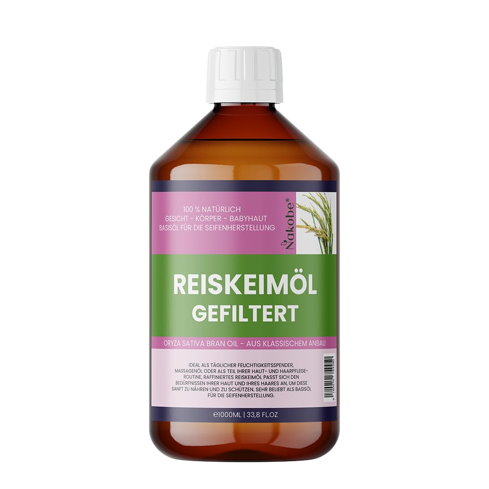 : Our rice germ oil comes from a controlled, residue-free source and is gently filtered to preserve all its valuable ingredients. The clear, fluid oil is rich in vitamin E, phytosterols, and natural antioxidants. It is perfect as a base oil for soap making, DIY cosmetics, as a gentle facial treatment, a nourishing hair treatment, and as a massage or aromatherapy oil. Residue-free quality: tested for pesticides and solvent residues. Filtered: free of chemical extracts, for pure purity. Soap making: optimal saponification properties and a stable lather. Skin care: intensely moisturizes dry and sensitive skin. Hair care: strengthens hair, prevents split ends, and promotes natural shine. Massage oil: glides smoothly, absorbs quickly, and relaxes tissues. Aromatherapy: Neutral fragrance, perfect base for creating essential oils. Suitable for allergy sufferers: Fragrance-free, colorant-free, and preservative-free. Packaging: Dark glass bottle that protects against light and maintains quality. INGREDIENTS Filtered rice germ oil INSTRUCTIONS Store in a cool, dry place away from light. SAFETY WARNING For external use only - Do not ingest. See moreSkin-friendly: Gentle enough for sensitive skin, babies, and allergy sufferers – fragrance-free and preservative-free. Multi-purpose: Suitable as a carrier oil for DIY cosmetics, serums, lotions, hair oils, and massage oils. Deep nourishing: Absorbs quickly without leaving a greasy residue – ideal for normal to dry skin. Soap base: A perfect, lightweight base oil for high-quality, mild soaps and DIY soap formulations. Gentle processing: Filtered without chemical solvents, retaining natural vitamins and antioxidants. Superior quality: 100 pure, filtered rice germ oil from controlled, residue-free cultivation.Huile de germe de riz de qualité supérieure - Huile de base légère pour cosmétiques DIY, savons, massage et aromathérapie - Nakobe (1000 ml) 500 ml (1er Pack)DESCRIPTION DU PRODUIT DESCRIPTION DU PRODUIT Description du produit : Notre huile de germe de riz provient d'une origine contrôlée sans résidus et est délicatement filtrée pour préserver tous les ingrédients précieux. L'huile claire et fluide est riche en vitamine E, en phytostérols et en antioxydants naturels. Elle est parfaite comme huile de base pour la fabrication de savon, les cosmétiques DIY, comme soin délicat du visage, cure nourrissante pour les cheveux et comme huile de massage ou d'aromathérapie. Qualité sans résidus : testé pour les pesticides et les résidus de solvant. Filtré : sans extraits chimiques, pour une pureté pure. Fabrication de savon : propriétés de saponification optimales et couronne en mousse stable. Soin de la peau : hydrate intensément les peaux sèches et sensibles. Soin des cheveux : renforce les cheveux, prévient les pointes fourchues et favorise la brillance naturelle. Huile de massage : glisse douce, pénètre rapidement et détend les tissus. Aromathérapie : parfum neutre, base parfaite pour les créations d'huiles essentielles. Convient aux personnes allergiques : sans parfum, sans colorants ni conservateurs. Emballage : flacon en verre foncé qui protège de la lumière et maintient la qualité. INGRÉDIENTS Huile de germe de riz filtrée MODE D'EMPLOI Conserver dans un endroit frais, sec et à l'abri de la lumière. AVERTISSEMENT DE SÉCURITÉ Uniquement pour un usage externe - Ne pas ingérer. Voir plusRespectueux de la peau : assez doux pour les peaux sensibles, les bébés et les personnes allergiques - Sans parfum ni conservateur. Multifonction : convient comme huile de support pour les cosmétiques DIY, les sérums, les lotions, les huiles capillaires et les massages. Soin en profondeur : pénètre rapidement sans graisser - Idéal pour les peaux normales à sèches. Base de savon : huile de base parfaite et légère pour des savons doux de haute qualité et des formulations de savon DIY. ? Traitement doux : filtré sans solvants chimiques, conserve les vitamines naturelles et les antioxydants. Qualité supérieure : huile de germe de riz 100 pure et filtrée issue d'une culture contrôlée sans résidus.
