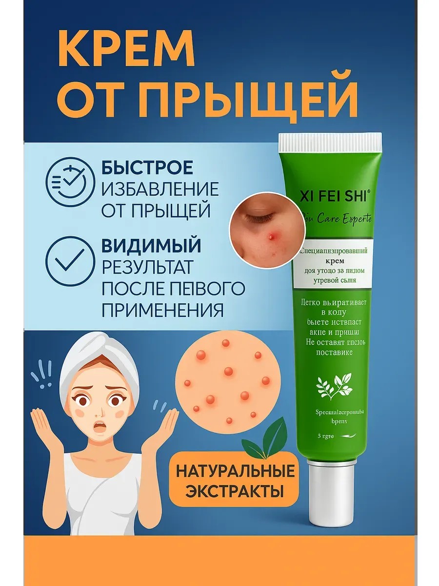 Средство легко наносится и быстро впитывается, не оставляя жирной пленки. Крем от акне и прыщей подходит для мужчины и подростков использования на лице и руках, поэтому станет незаменимым помощником в расширении режима ухода за вашей кожей. Он эффективен как в качестве ежедневного средства для профилактики прыщей, так и в качестве локального лечения при обострениях. Позаботьтесь о красоте и здоровье своей кожи с помощью нашего уникального крема от прыщей и наслаждайтесь безупречным внешним видом.