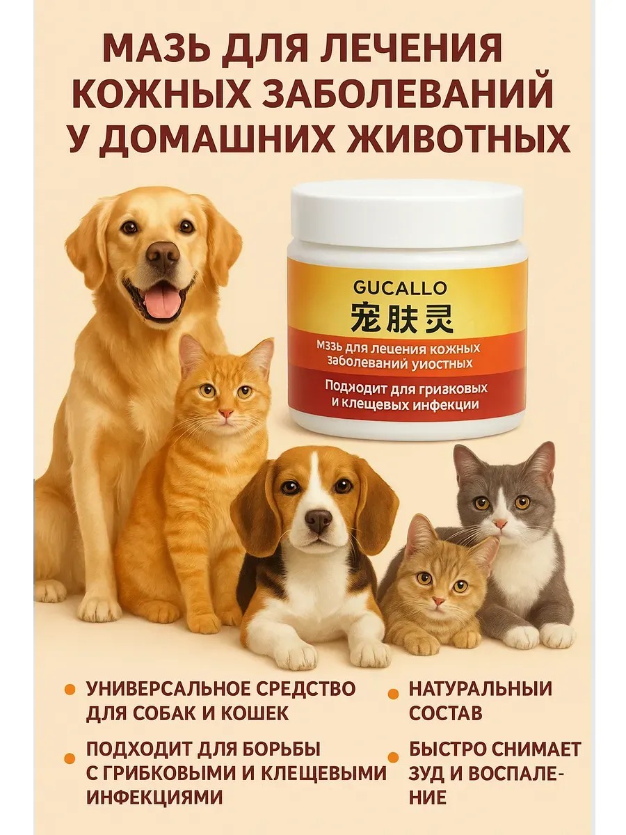 Заживляющий крем лечебный для кожи собак и кошек зуд, 30 г — универсальное средство для ухода за кожей домашних животных. Антибактериальная мазь для собак и кошек от лишая разработан по традиционным рецептам китайской ветеринарной медицины и предназначен для эффективного решения кожных проблем у животных.
