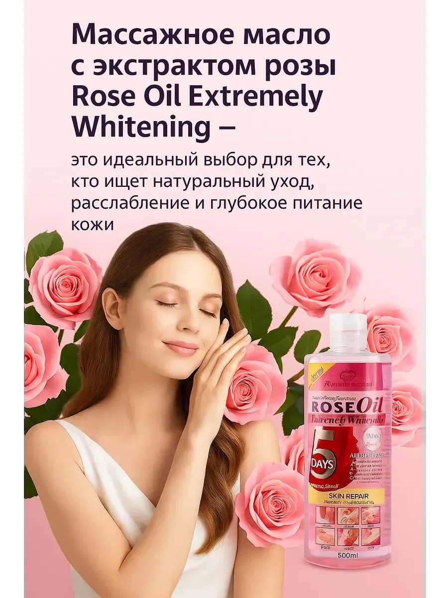 Эфирное масло с розой для лица и шеи Rose Oil Extremely Whitening, 500 мл.