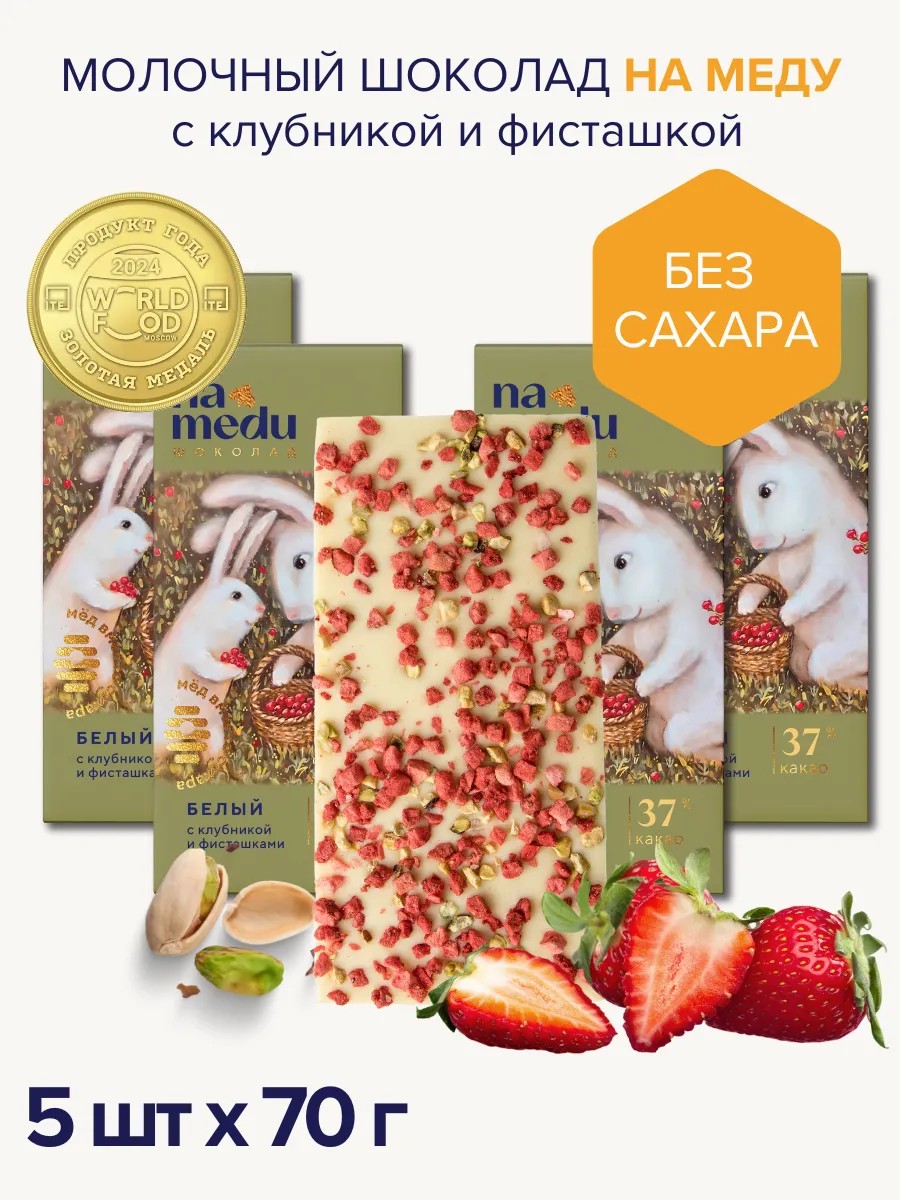 NAMEDU Гагаринские мануфактуры Белый шоколад без сахара с фисташкой и клубникой 5 шт