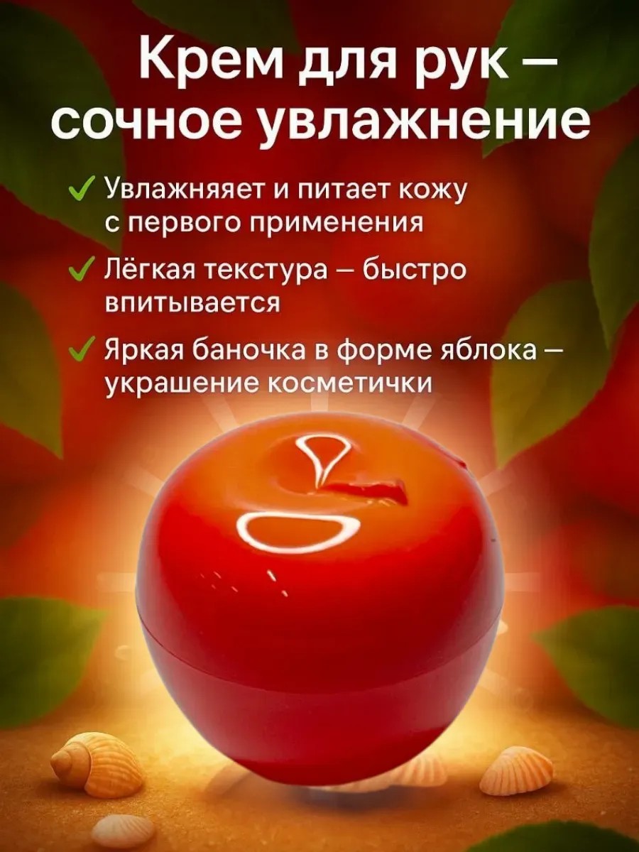 Крем для рук в виде яблока – это стильный и полезный аксессуар для ежедневного ухода, который сочетает в себе необычный дизайн и высокую эффективность. Благодаря удобной упаковке в форме яблока крем не только радует глаз, но и становится приятным элементом косметички или туалетного столика.