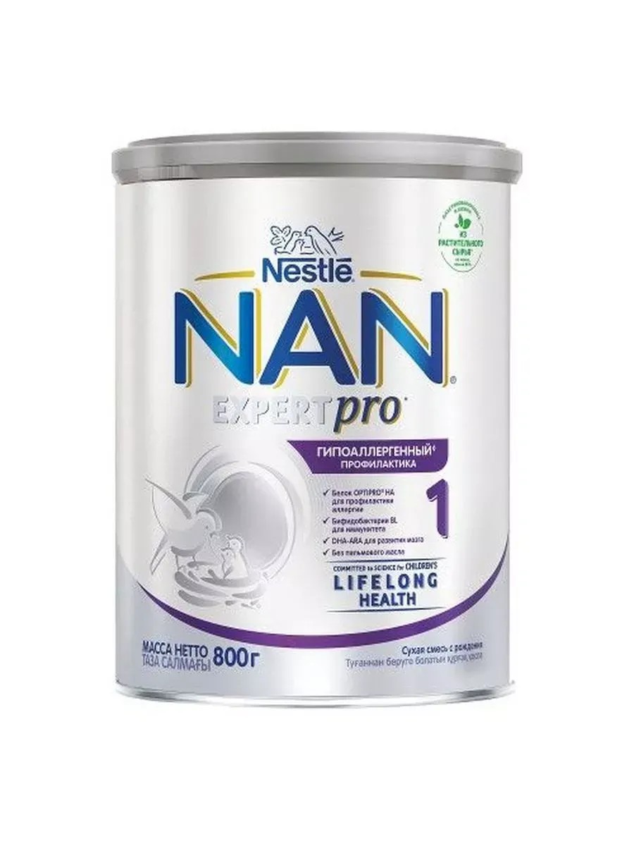 NAN 1 OPTIPRO HA ГИПОАЛЛЕРГЕННЫЙ СМЕСЬ СУХАЯ Д/ДЕТЕЙ С РОЖД 800,0Молочная смесь NAN Гипоаллергенный 1 Optipro HA с рожденияНаучно доказано, что белок - один из самых важных нутриентов для роста и развития Вашего ребенка, включая формирование мозга, мышечной ткани и других органов. Качество и количество белка, который ребенок получает с пищей, поможет заложить крепкую основу его здоровья сейчас и в будущем. Правильно подобранный белок в смеси может снизить риск развития аллергии на белки коровьего молока, помочь становлению иммунитета и развитию пищеварительной системы, а также здоровому набору массы тела. Вот почему белки называют «кирпичиками жизни», и только с помощью белка самого высокого качества можно заложить крепкую основу для развития Вашего ребенка.NAN Гипоаллергенный 1 Optipro HA - гипоаллергенная смесь, предназначенная для кормления здоровых детей с рождения в случаях, когда грудное вскармливание невозможно. Она обеспечивает Вашего ребенка всеми нутриентами, необходимыми для его гармоничного физического и умственного развития.Клинически доказано, что специально разработанная смесь NAN Гипоаллергенный 1 Optipro HA уменьшает риск развития аллергии, в частности атопического дерматита, в первые решающие годы жизни. Однако ее не следует использовать без консультации врача, если Ваш малыш уже имеет аллергию на белки коровьего молока.Введение другой смеси, а также коровьего молока, должно применяться под наблюдением медицинского работника. Optipro HA - это оптимизированный, частично гидролизированный белковый комплекс, полученный по специальной технологии. Он имеет значительно сниженную аллергенность и, как результат, уменьшает риск развития аллергии.Живые бифидобактерии BL помогают тренировать и развивать иммунную систему Вашего малыша. DHA и ARA - две особые жирные кислоты, присутствующие в грудном молоке, играют важную роль в становлении иммунной системы малыша и способствуют развитию мозга и зрения.Особенности:Частично гидролизованный белок.Бифидобактерии BL
