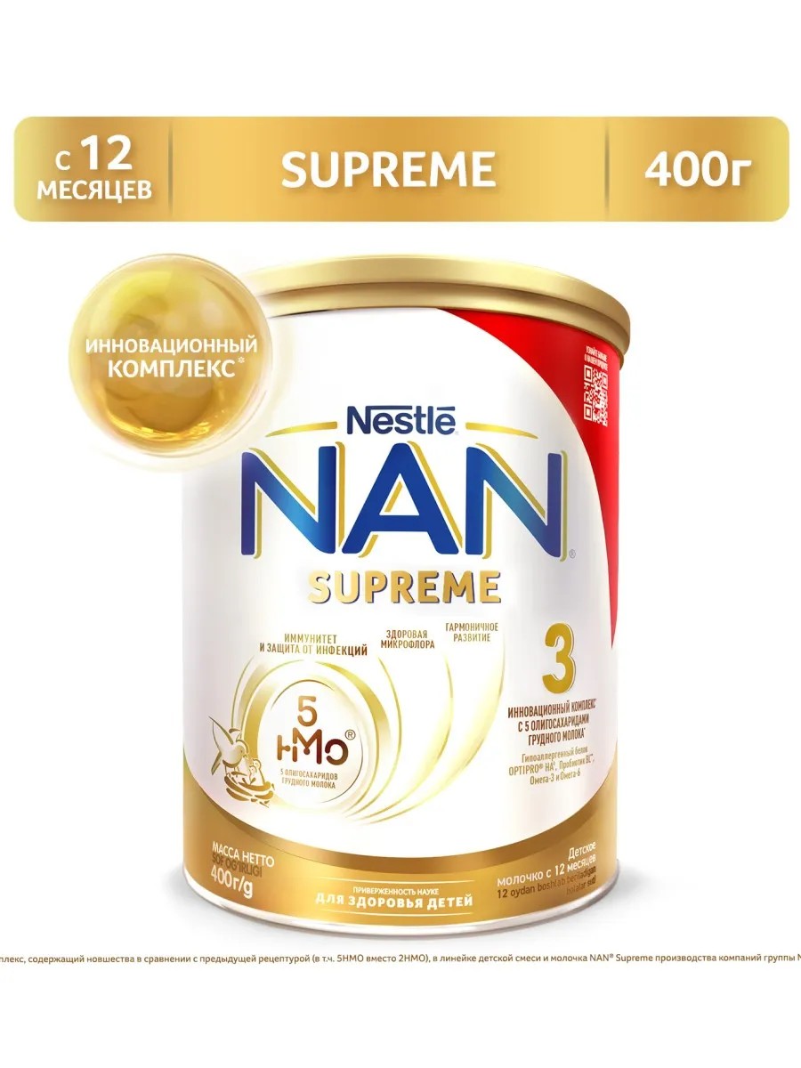 NAN 3 SUPREME с инновационным комплексом1 с 5 олигосахаридами грудного молока, с 12 месяцев, 400 г.