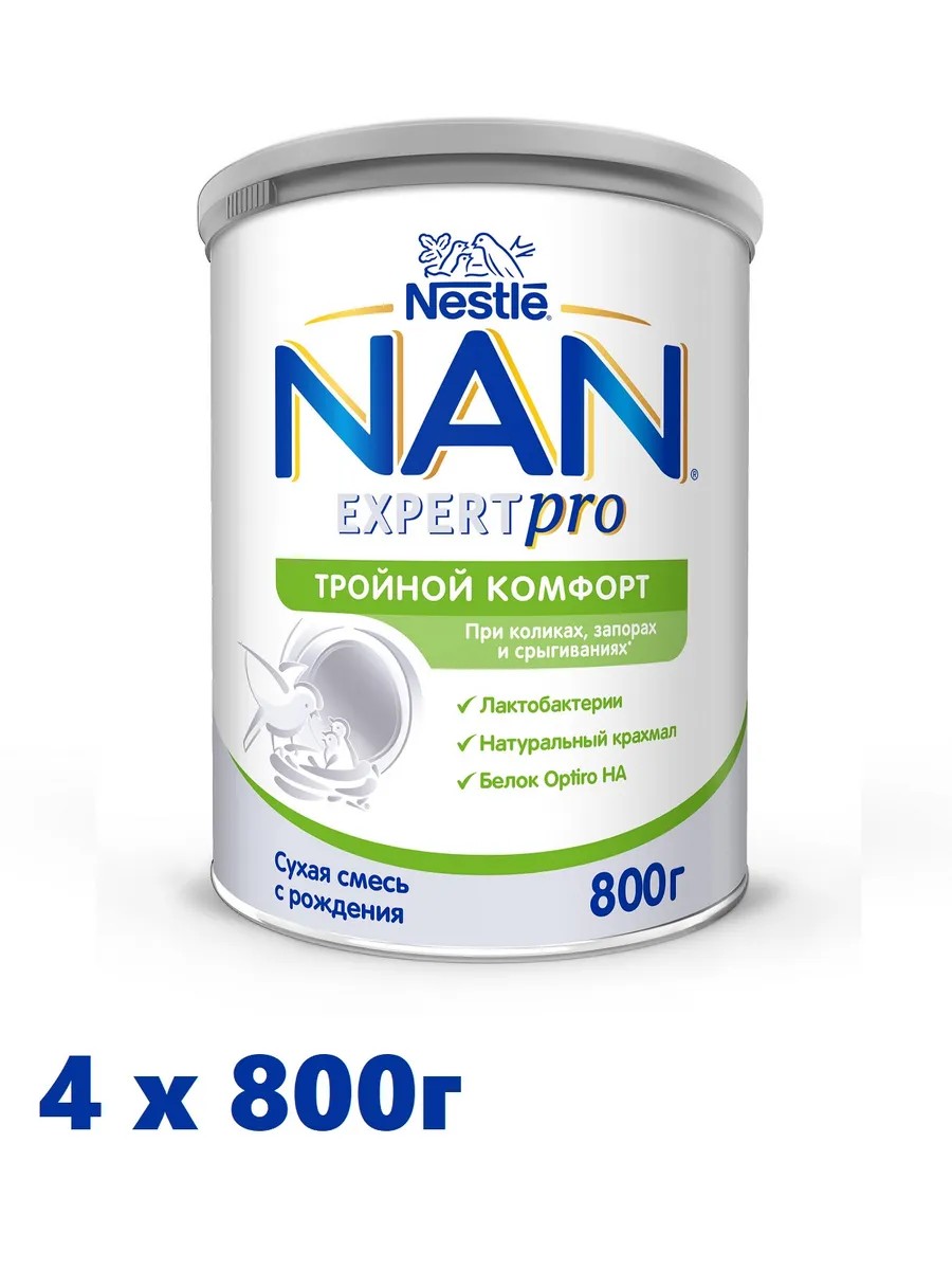 Смесь NAN Тройной комфорт – питание, предназначенное для устранения основных симптомов функциональных расстройств пищеварения. Подходит для использования в качестве единственного источника питания для детей с рождения. Смесь обеспечит ребенка всеми питательными веществами, необходимыми для его оптимального роста и развития. Благодаря особой комбинации компонентов смесь NAN Тройной комфорт способствует устранению младенческих запоров и срыгиваний, нормализует пищеварение, а также способствует улучшению состава кишечной микрофлоры.